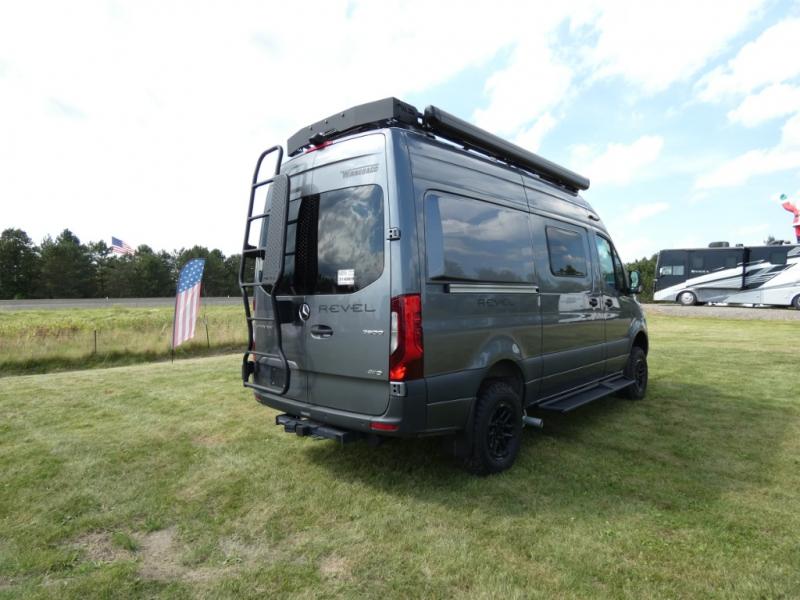 The Revel Class B diesel motorhome allows you to venture off-road thanks to the AWD Sprinter chassis with 2.0L high-output turbo-diesel 4-cylinder under the hood. The Winnebago Power MAX system (8.4kWh Lithionics lithium-ion battery with dual alternator charging capability) and Power Hub Pro which is an exclusive 5-in1 system that delivers off-grid power like nothing before allowing you to stay off-grid for up to 7 days . The interior provides a comfortable and relaxing space featuring modern decor including an updated galley with compression-latch cabinets, a new wall-mounted table, a semi-private wet bath, plus a power lift bed with WinnSleep® mattress technology, and the gear garage below the bed features (6) L-track bases for secure and flexible storage, plus cabinet storage and more. For the freedom to explore in any season, start treating roads like suggestions, and choose this Revel to get you anywhere you dream to go today!