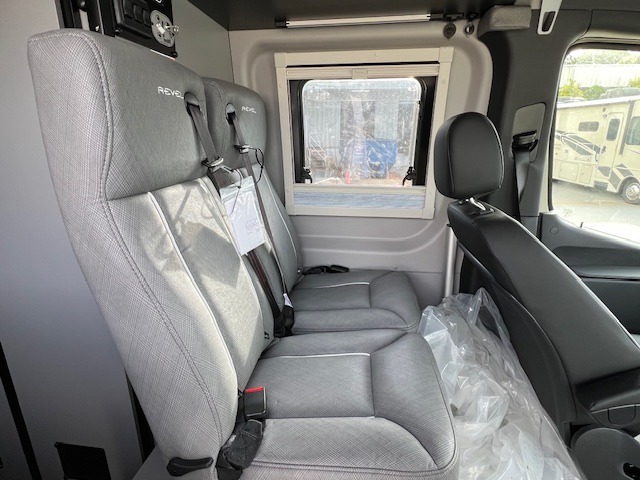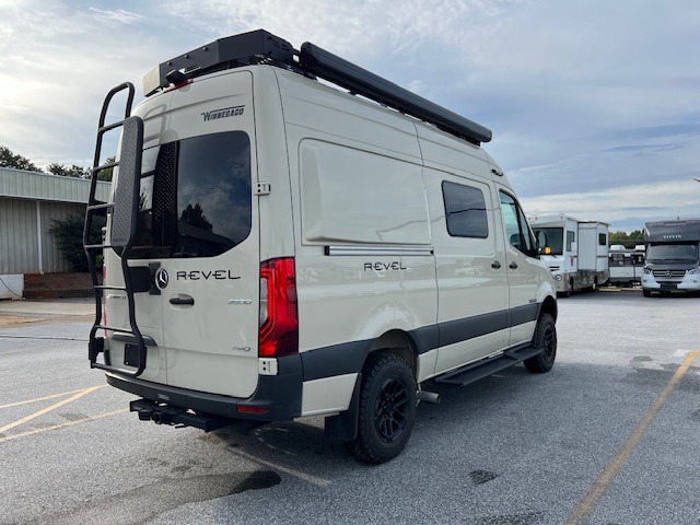 The Revel Class B diesel motorhome allows you to venture off-road thanks to the AWD Sprinter chassis with 2.0L high-output turbo-diesel 4-cylinder under the hood. The Winnebago Power MAX system (8.4kWh Lithionics lithium-ion battery with dual alternator charging capability) and Power Hub Pro which is an exclusive 5-in1 system that delivers off-grid power like nothing before allowing you to stay off-grid for up to 7 days . The interior provides a comfortable and relaxing space featuring modern decor including an updated galley with compression-latch cabinets, a new wall-mounted table, a semi-private wet bath, plus a power lift bed with WinnSleep® mattress technology, and the gear garage below the bed features (6) L-track bases for secure and flexible storage, plus cabinet storage and more. For the freedom to explore in any season, start treating roads like suggestions, and choose this Revel to get you anywhere you dream to go today!