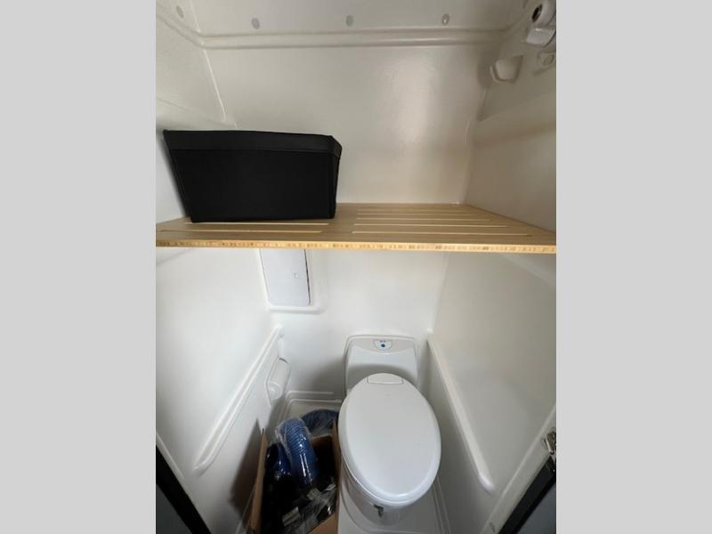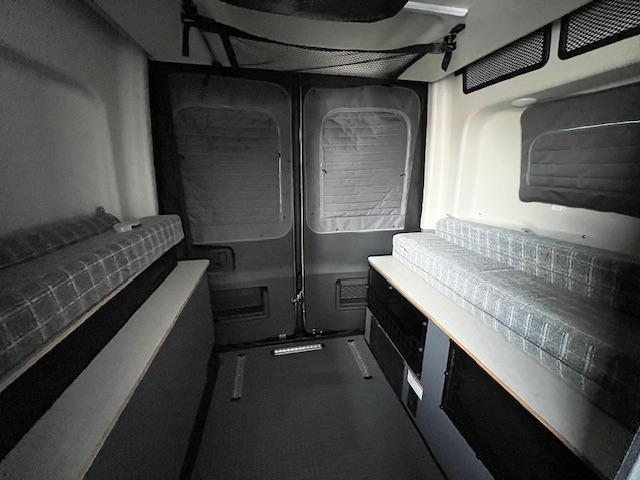 Looking for adventure yet not sure which road you'll take? This camper van offers the outdoor enthusiast a way to venture the unknown. Once at your destination, you can easily set up the interior including a power lift bed in the rear. The cab seats swivel around and there is a bench seat with adjustable table for easy dining opposite. There is even a fold-down outside table to dine outdoors if you want. You will find storage throughout including in the gear garage below the bed where you can store your hiking sticks and backpacks. The cook will have a portable single induction range top, a stainless steel sink, and a counter extension for more prep space plus a refrigerator below the counter. There is also a wet bath to stay clean and refreshed!