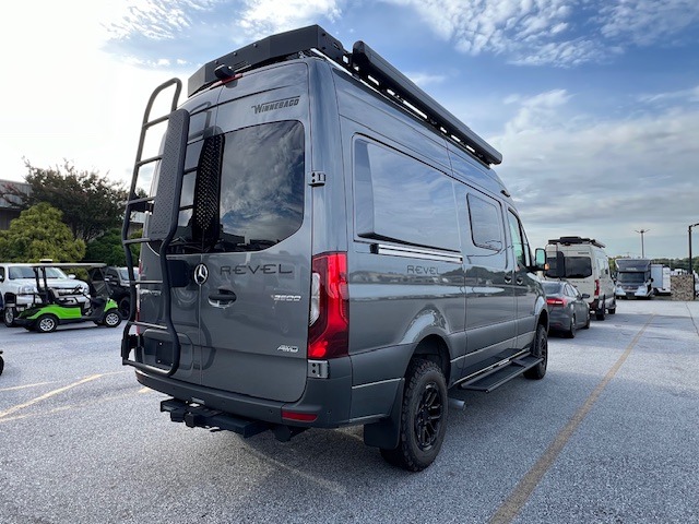 The Revel Class B diesel motorhome allows you to venture off-road thanks to the AWD Sprinter chassis with 2.0L high-output turbo-diesel 4-cylinder under the hood. The Winnebago Power MAX system (8.4kWh Lithionics lithium-ion battery with dual alternator charging capability) and Power Hub Pro which is an exclusive 5-in1 system that delivers off-grid power like nothing before allowing you to stay off-grid for up to 7 days . The interior provides a comfortable and relaxing space featuring modern decor including an updated galley with compression-latch cabinets, a new wall-mounted table, a semi-private wet bath, plus a power lift bed with WinnSleep® mattress technology, and the gear garage below the bed features (6) L-track bases for secure and flexible storage, plus cabinet storage and more. For the freedom to explore in any season, start treating roads like suggestions, and choose this Revel to get you anywhere you dream to go today!