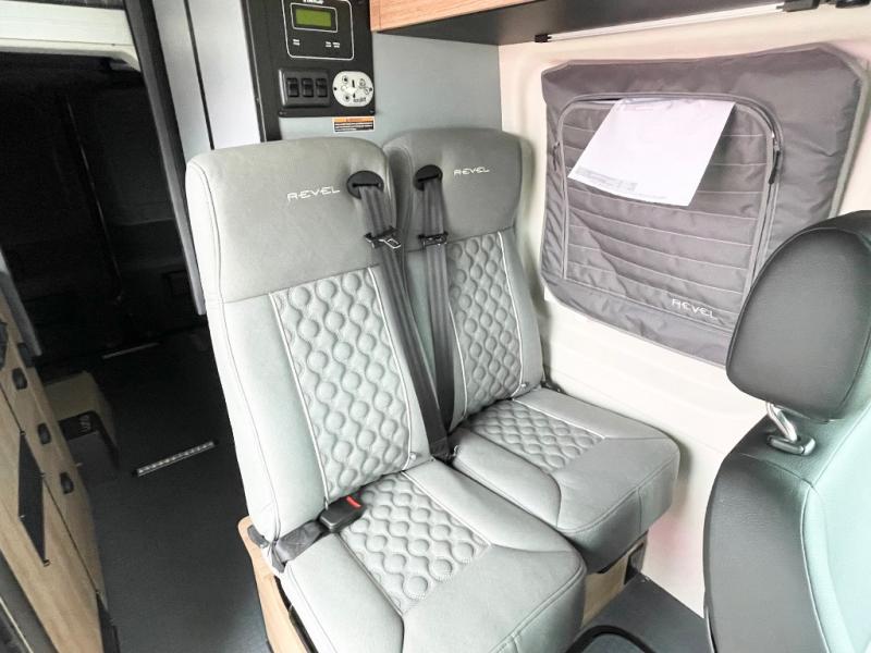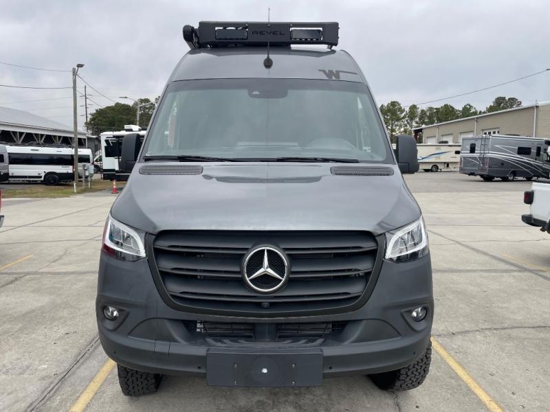 The Revel Class B diesel motorhome allows you to venture off-road thanks to the AWD Sprinter chassis with 2.0L high-output turbo-diesel 4-cylinder under the hood. The Winnebago Power MAX system (8.4kWh Lithionics lithium-ion battery with dual alternator charging capability) and Power Hub Pro which is an exclusive 5-in1 system that delivers off-grid power like nothing before allowing you to stay off-grid for up to 7 days . The interior provides a comfortable and relaxing space featuring modern decor including an updated galley with compression-latch cabinets, a new wall-mounted table, a semi-private wet bath, plus a power lift bed with WinnSleep® mattress technology, and the gear garage below the bed features (6) L-track bases for secure and flexible storage, plus cabinet storage and more. For the freedom to explore in any season, start treating roads like suggestions, and choose this Revel to get you anywhere you dream to go today!