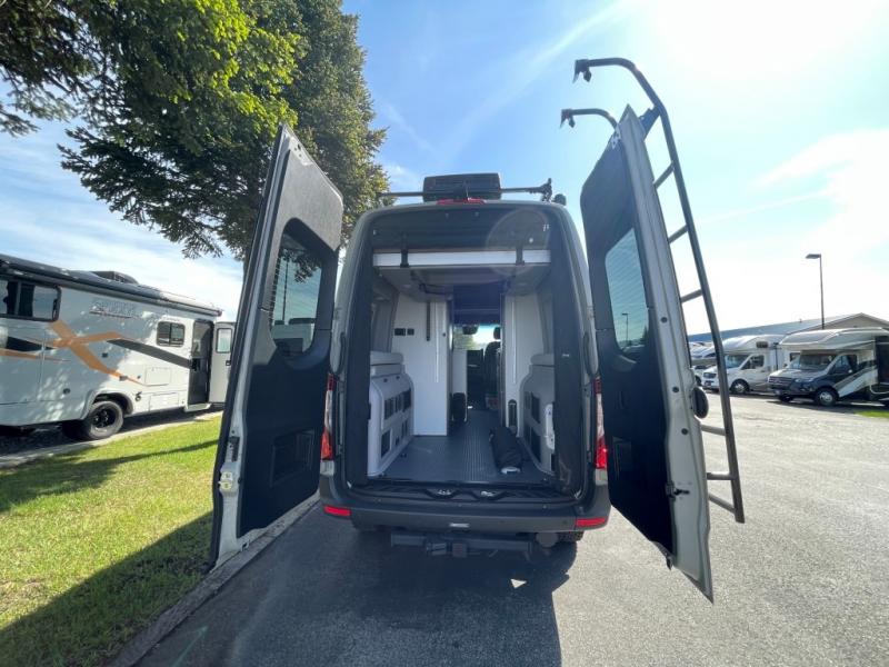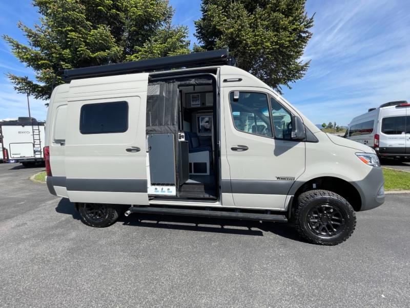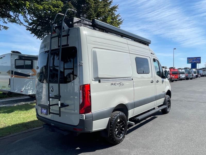 Go off-grid and off the beaten path with the Revel Sport Class B diesel motorhome by Winnebago. The Lithionics 4.1 kWh LiFePO4 battery features a second alternator to charge the system, and you'll appreciate the Bluetooth control, along with 215-watts of solar to keep you powered up. This camper van sits on the durable Mercedes-Benz AWD sprinter chassis with a 2.0L high-output turbo-diesel engine. You will also find a MBUX touchscreen multimedia infotainment system, heated cab seats, plus added safety features, such as active braking assist and blind spot assist. The interior of the Revel Sport is outfitted with heavy duty vinyl flooring throughout to withstand your adventrous lifestyle, and there are RAM Tough-Track mounts throughout to keep your gear secure. Additional features include a hydronic heating system, aluminum running boards with ground effect lighting, a 5,000 lb. trailer hitch, and so much more!