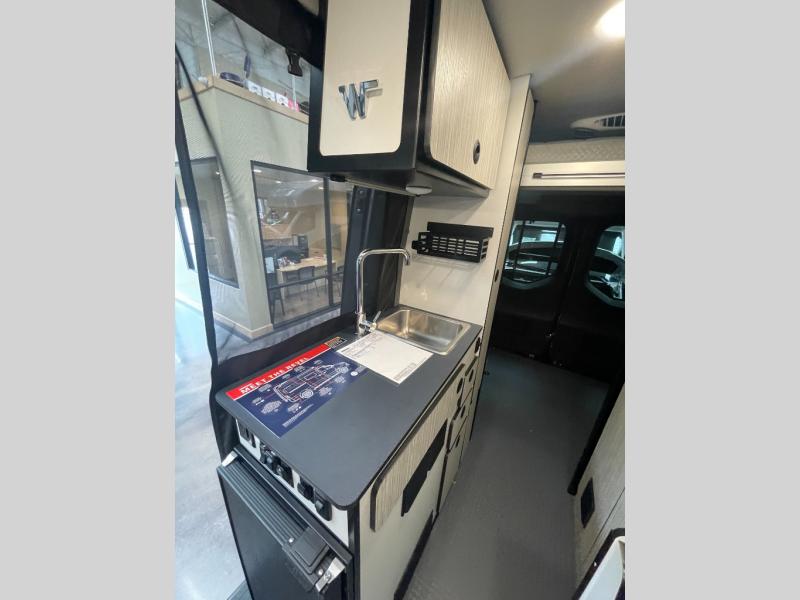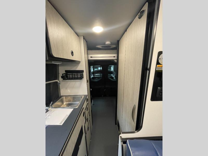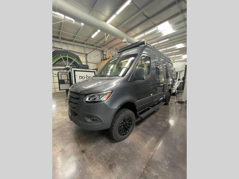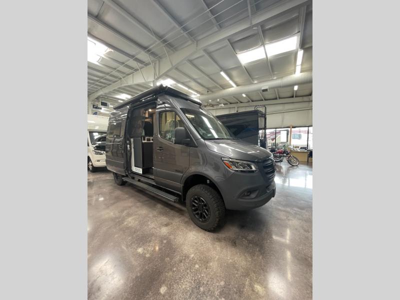 Go off-grid and off the beaten path with the Revel Sport Class B diesel motorhome by Winnebago. The Lithionics 4.1 kWh LiFePO4 battery features a second alternator to charge the system, and you'll appreciate the Bluetooth control, along with 215-watts of solar to keep you powered up. This camper van sits on the durable Mercedes-Benz AWD sprinter chassis with a 2.0L high-output turbo-diesel engine. You will also find a MBUX touchscreen multimedia infotainment system, heated cab seats, plus added safety features, such as active braking assist and blind spot assist. The interior of the Revel Sport is outfitted with heavy duty vinyl flooring throughout to withstand your adventrous lifestyle, and there are RAM Tough-Track mounts throughout to keep your gear secure. Additional features include a hydronic heating system, aluminum running boards with ground effect lighting, a 5,000 lb. trailer hitch, and so much more!