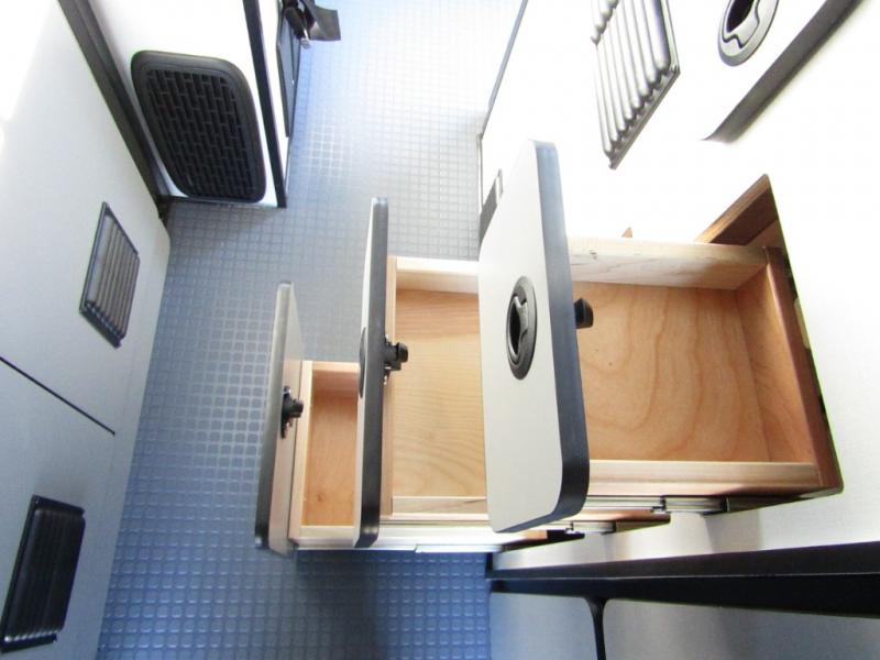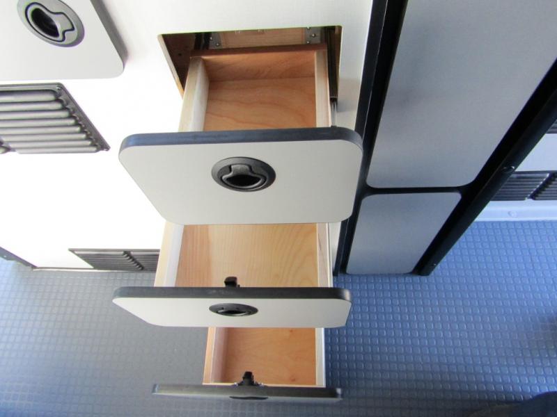 Inside, the Revel 44N offers a thoughtfully designed interior featuring a power lift bed, wet bath with gear closet, and an overhead cab shelf for extra storage. The fully equipped kitchen includes a 12V 8 cubic foot refrigerator, making meal prep easy on the road. With modern finishes, clever storage solutions, and a bright, open layout, this motorhome ensures comfort whether you’re parked in the mountains, by the coast, or at your favorite campsite.