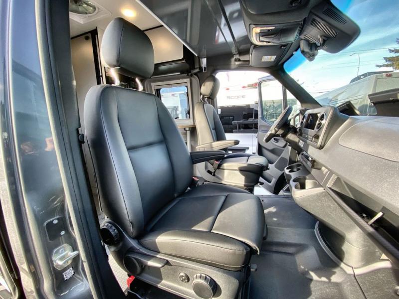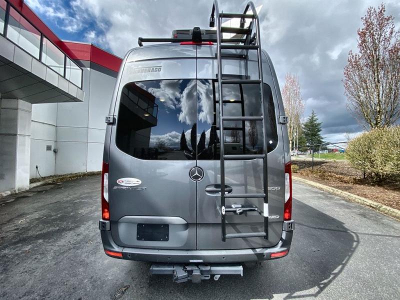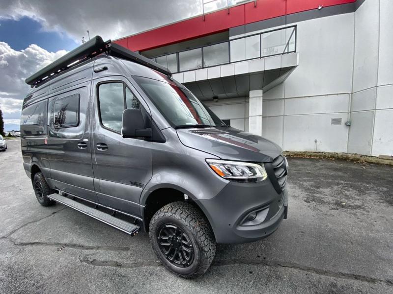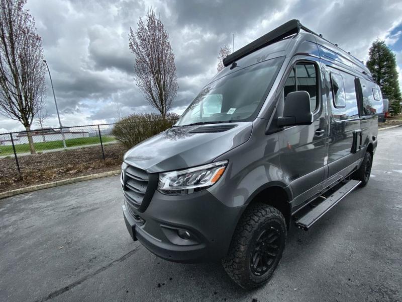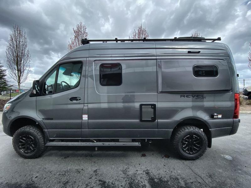 Go off-grid and off the beaten path with the Revel Sport Class B diesel motorhome by Winnebago. The Lithionics 4.1 kWh LiFePO4 battery features a second alternator to charge the system, and you'll appreciate the Bluetooth control, along with 215-watts of solar to keep you powered up. This camper van sits on the durable Mercedes-Benz AWD sprinter chassis with a 2.0L high-output turbo-diesel engine. You will also find a MBUX touchscreen multimedia infotainment system, heated cab seats, plus added safety features, such as active braking assist and blind spot assist. The interior of the Revel Sport is outfitted with heavy duty vinyl flooring throughout to withstand your adventrous lifestyle, and there are RAM Tough-Track mounts throughout to keep your gear secure. Additional features include a hydronic heating system, aluminum running boards with ground effect lighting, a 5,000 lb. trailer hitch, and so much more!