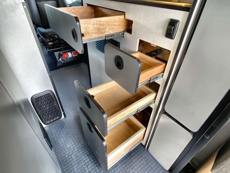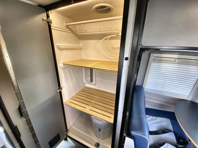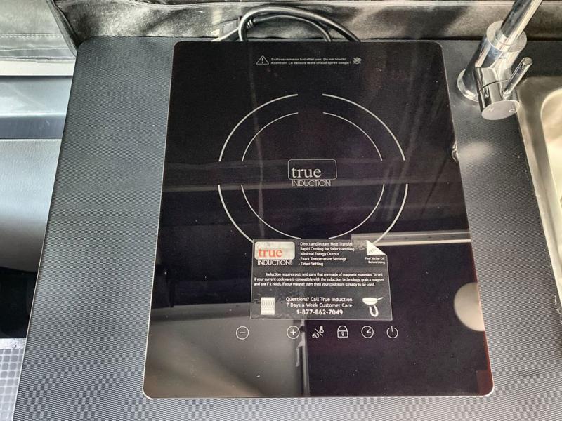 Adventure is just around the corner with this camper van! Once you arrive at your destination, you can make a quick lunch on the single induction cooktop that is stored in a drawer so you can have more counter space when you need it. The swivel cab seats and bench seat with a removable pedestal table provide a place to enjoy your meal at before you head outdoors. An all-in-one gear closet and wet bath will let you freshen up when you return, and the power lift bed with a gear garage below will provide a great night's rest. And if you're needing additional sleeping space, just choose the optional front cab air mattress!