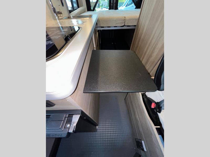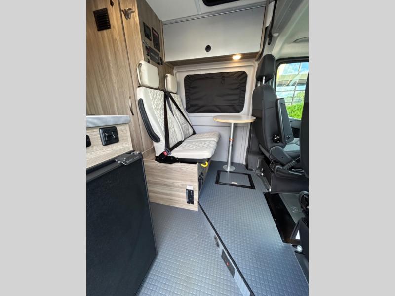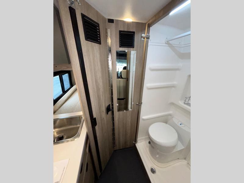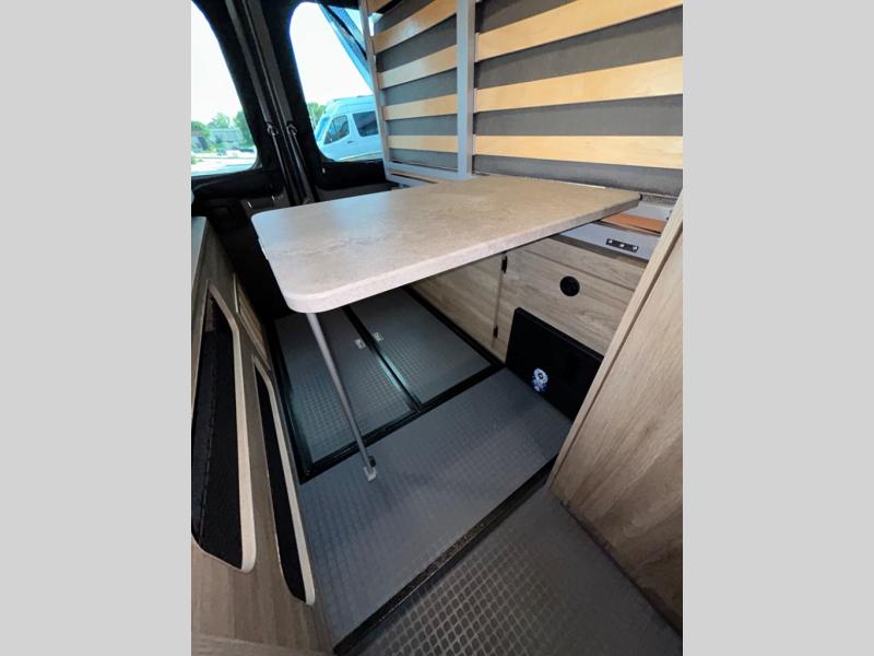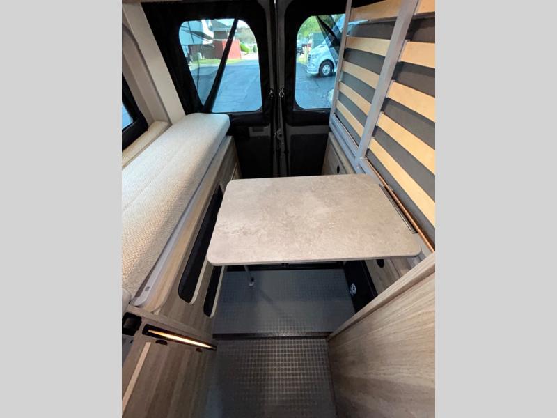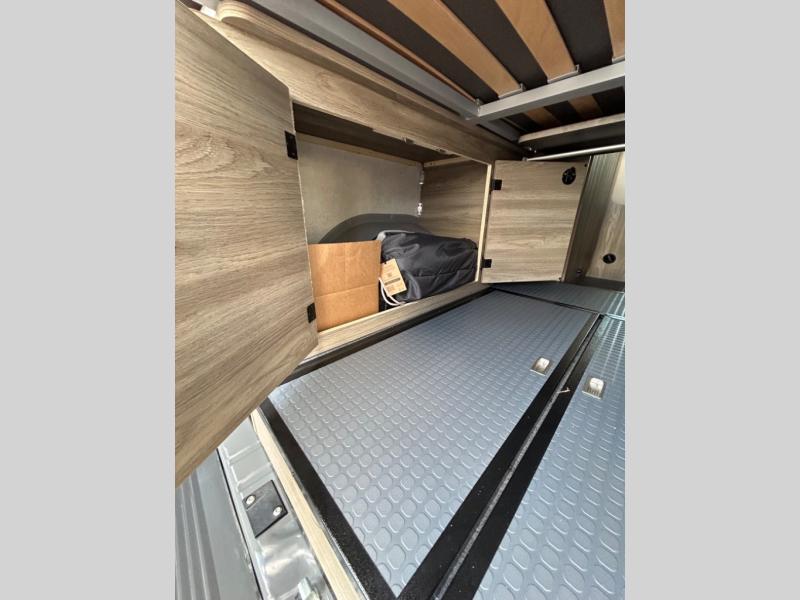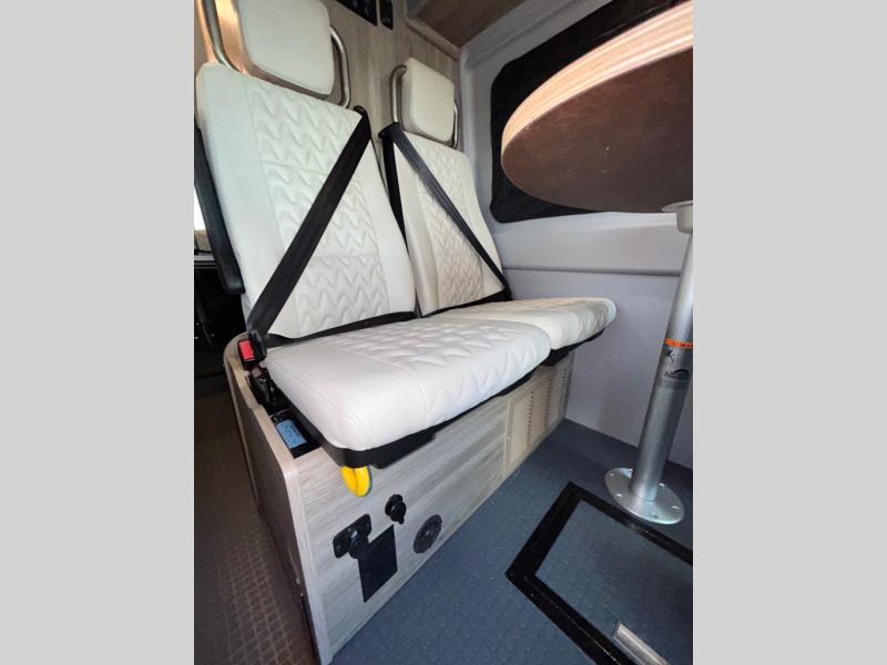 Step inside to find a cleverly designed interior that maximizes space. The rear Murphy+ bed converts easily into a comfortable lounge, while the full wet bath provides privacy and convenience. The compact kitchenette comes complete with a sink, cooktop, and refrigerator, making it simple to prepare meals on the go. Thoughtful storage solutions throughout the van keep your gear organized and accessible, while modern LED lighting and a versatile dinette area enhance comfort and functionality.