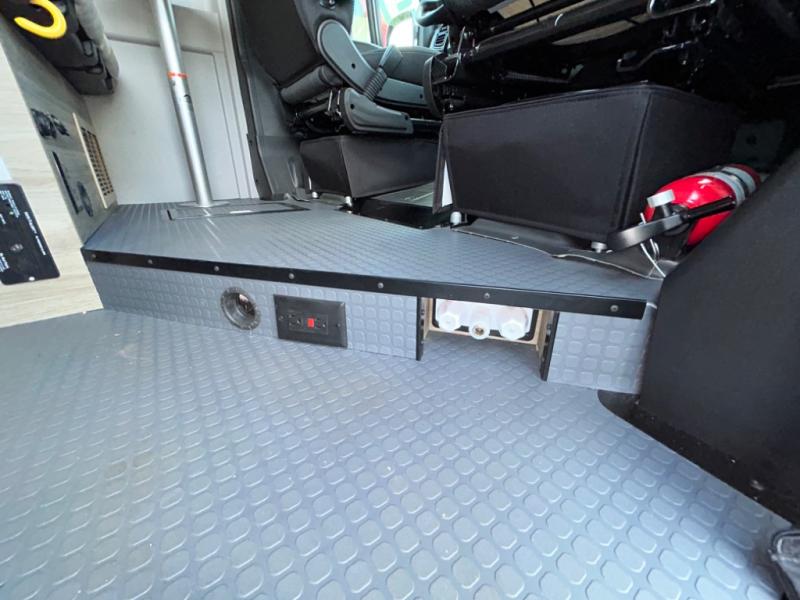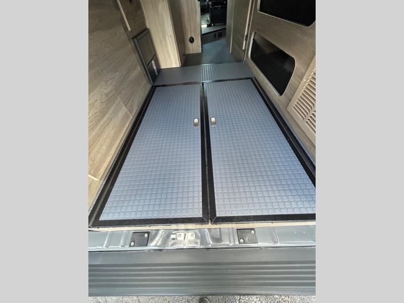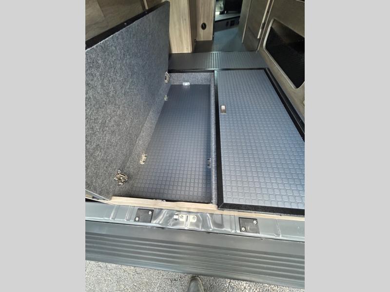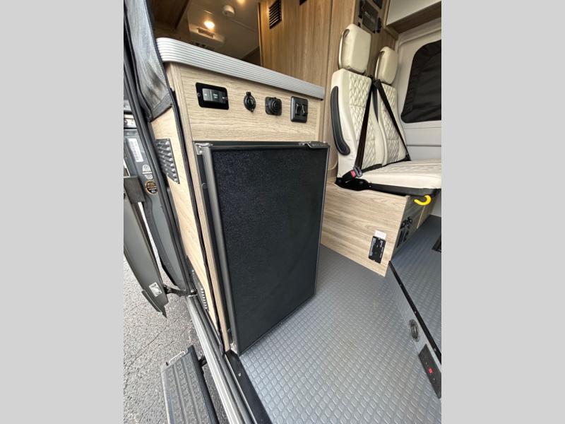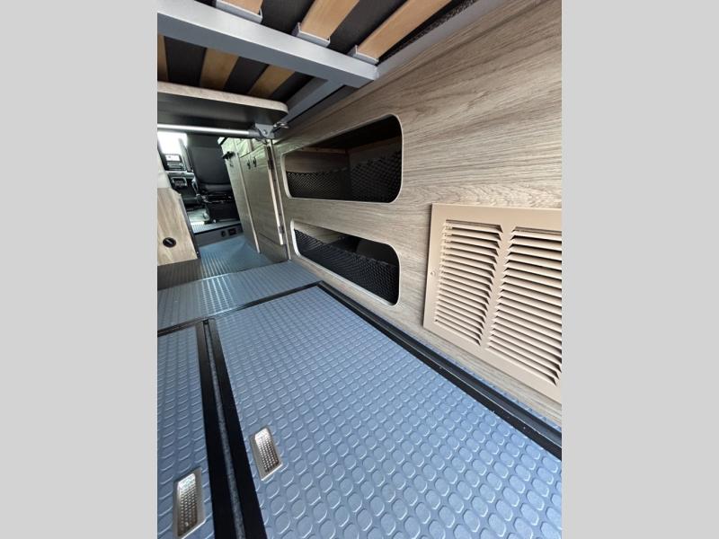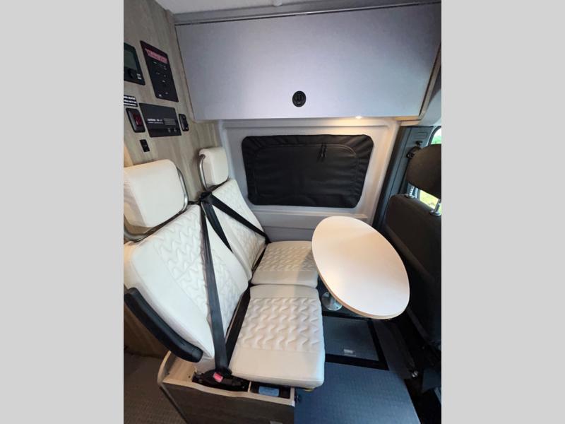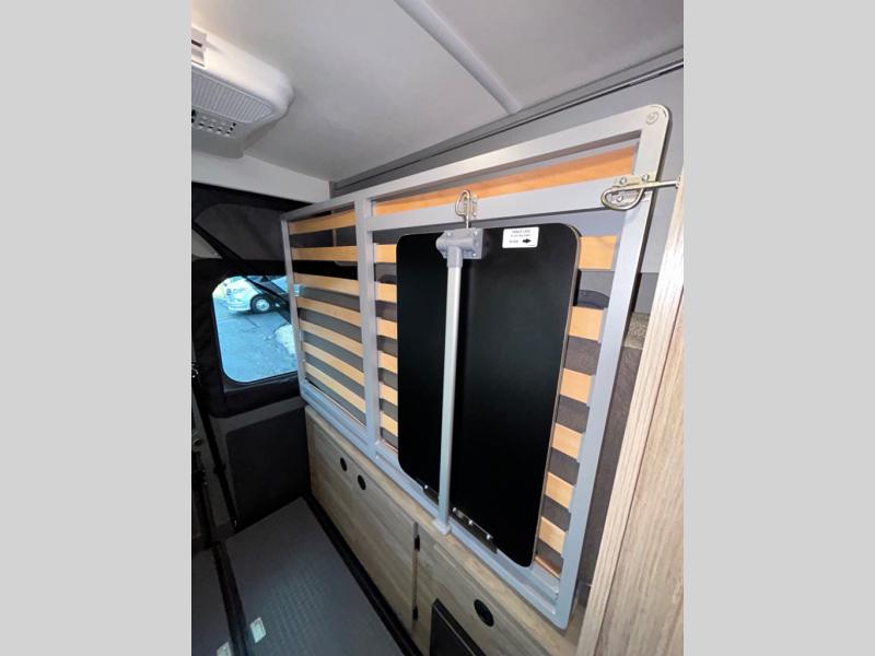 Step inside to find a cleverly designed interior that maximizes space. The rear Murphy+ bed converts easily into a comfortable lounge, while the full wet bath provides privacy and convenience. The compact kitchenette comes complete with a sink, cooktop, and refrigerator, making it simple to prepare meals on the go. Thoughtful storage solutions throughout the van keep your gear organized and accessible, while modern LED lighting and a versatile dinette area enhance comfort and functionality.