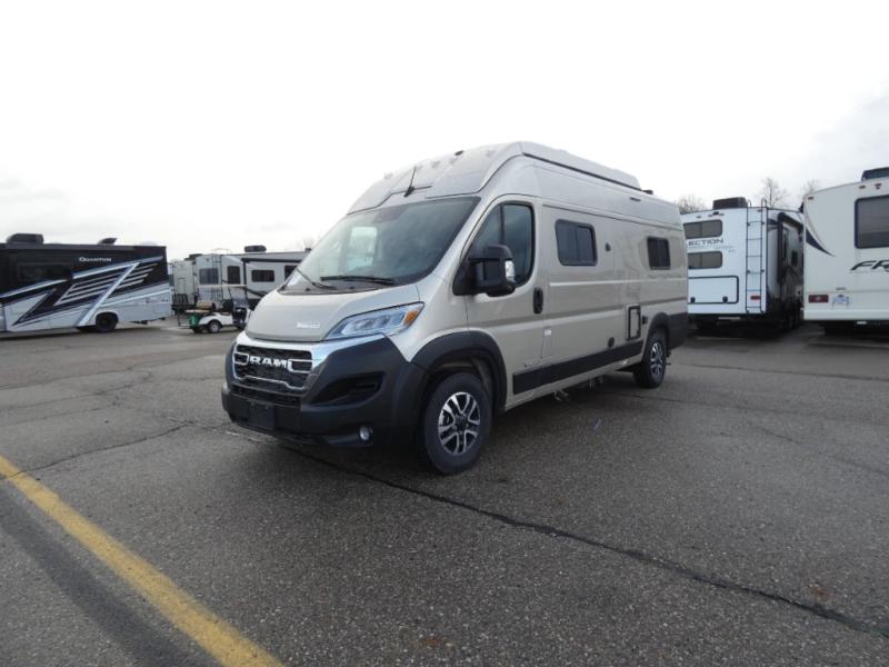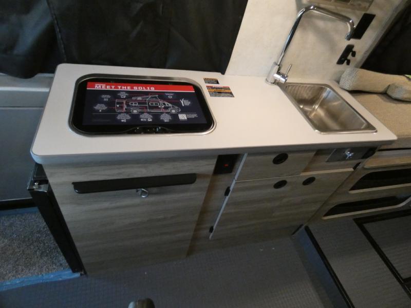 Each Solis Class B gas motorhome by Winnebago sits upon a fuel-efficient Ram ProMaster chassis with a 3.6L V6 engine to power your adventures. You will love the cab conveniences that make each trip enjoyable, like the radio/review monitor system touchscreen and the crosswind assist to keep you steady on the road. Some of the hassle-free amenities you will appreciate are the exterior wash station, the Eco-Hot water system, and the water center control panel located inside the right rear door. Head indoors to find heavy-duty vinyl flooring throughout, a laminate countertop and a stainless steel sink in the galley, plus tinted coach windows for added privacy. The Solis also features off-grid capabilities with its two deep-cycle Group 31 batteries and 220-watt flexible surface solar panel with a controller. Adventures awaits in the Solis Class B gas motorhome!