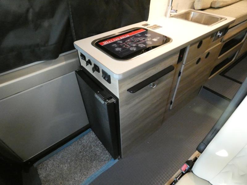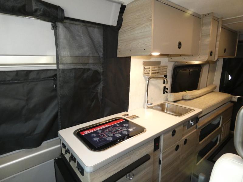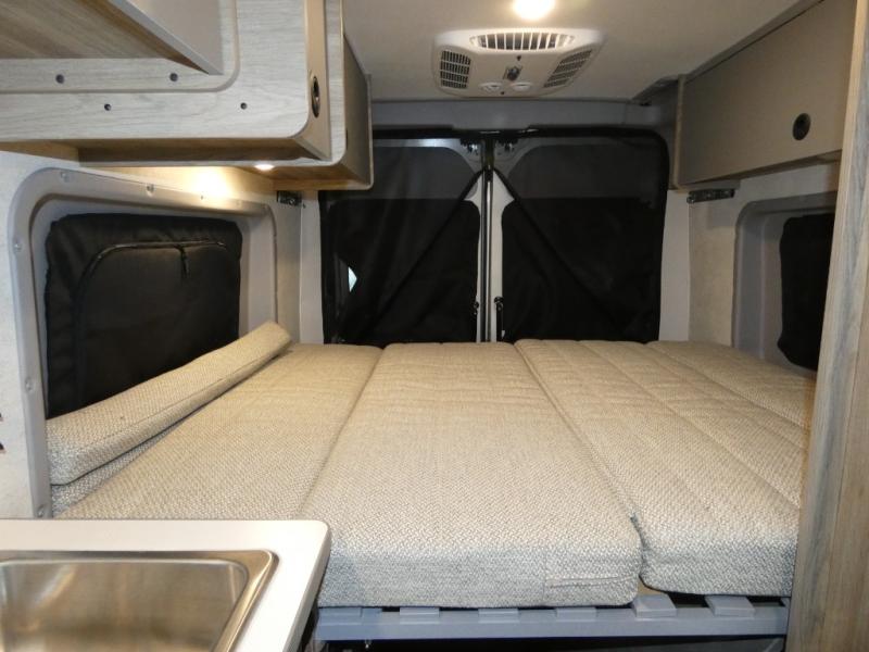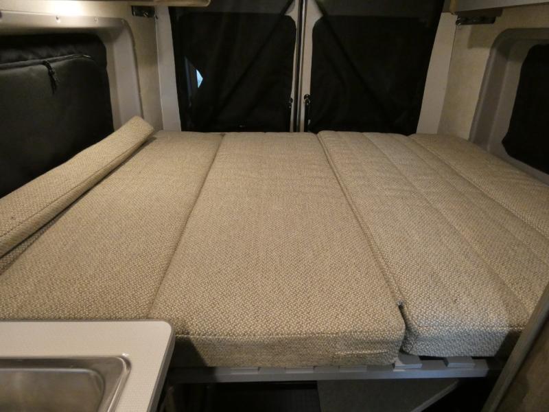 Enjoy a weekend ride in the mountains or make it an overnight stay with versatile sleeping options in this camper van. You'll find the Murphy+ bed in the back will provide a great night's rest and of course the little ones will love the pop-top sleeping area to climb into each night. After you've freshened up in the convenient wet bath, prepare breakfast on the two burner range, and the milk and eggs can go back in the 3.0 cu. ft. single door refrigerator/freezer. This model also includes rear double doors with screens to let the breeze in and keep bugs out!