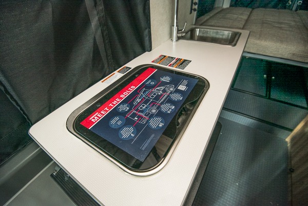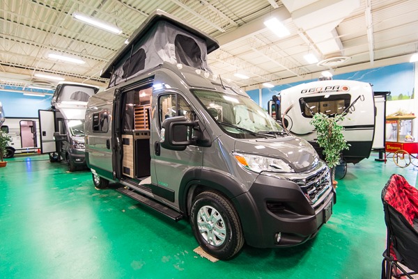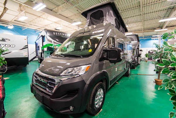 Enjoy a weekend ride in the mountains or make it an overnight stay with versatile sleeping options in this camper van. You'll find the Murphy+ bed in the back will provide a great night's rest, or you can choose the optional sofa/bed with added belted seating if you have more tag-alongs. And of course the little ones will love the pop-top sleeping area to climb into each night. After you've freshened up in the convenient wet bath, prepare breakfast on the two burner range, and the milk and eggs can go back in the 3.0 cu. ft. single door refrigerator/freezer. This model also includes rear double doors with screens to let the breeze in and keep bugs out!
