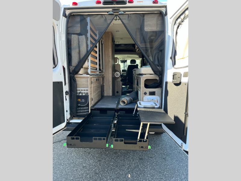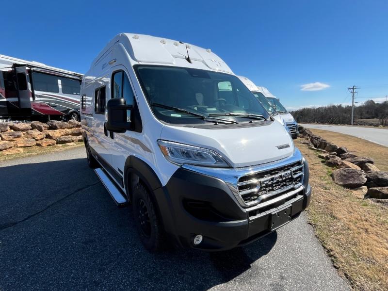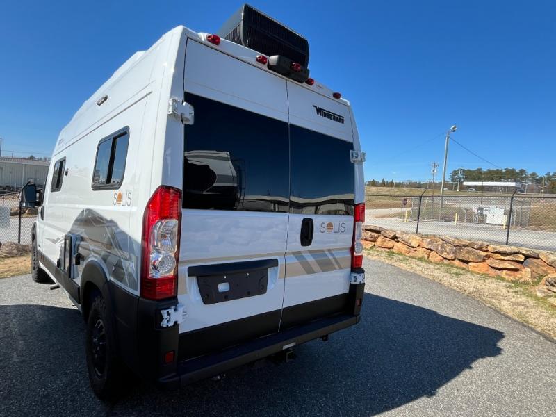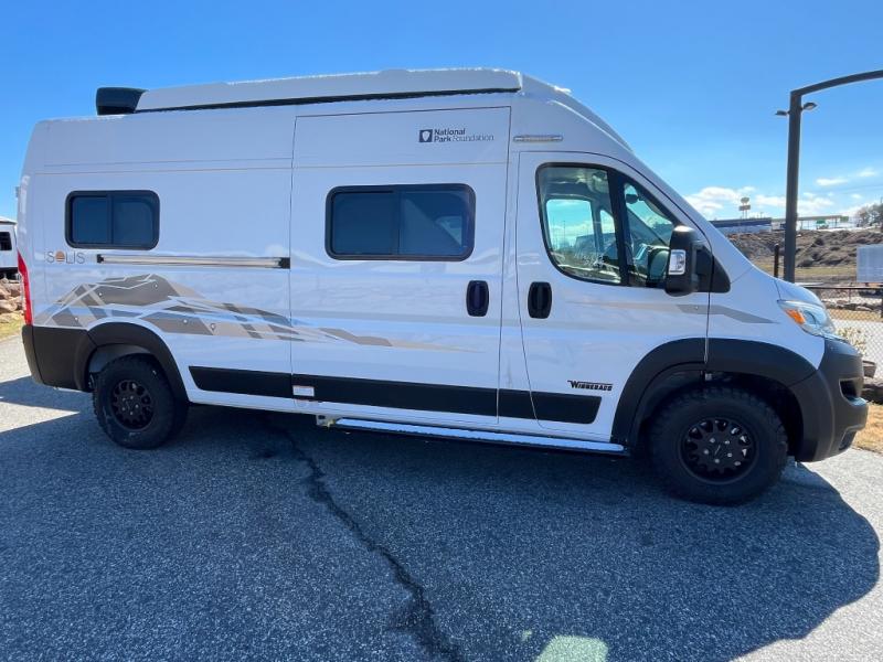 Each Solis Class B gas motorhome by Winnebago sits upon a fuel-efficient Ram ProMaster chassis with a 3.6L V6 engine to power your adventures. You will love the cab conveniences that make each trip enjoyable, like the radio/review monitor system touchscreen and the crosswind assist to keep you steady on the road. Some of the hassle-free amenities you will appreciate are the exterior wash station, the Eco-Hot water system, and the water center control panel located inside the right rear door. Head indoors to find heavy-duty vinyl flooring throughout, a laminate countertop and a stainless steel sink in the galley, plus tinted coach windows for added privacy. The Solis also features off-grid capabilities with its two deep-cycle Group 31 batteries and 220-watt flexible surface solar panel with a controller. Adventures awaits in the Solis Class B gas motorhome!