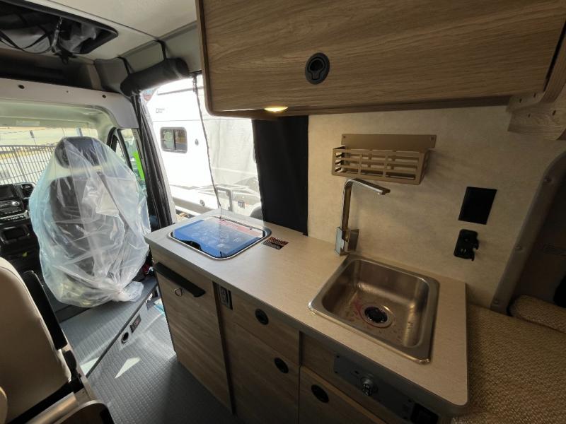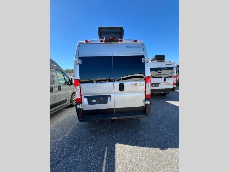 Each Solis Class B gas motorhome by Winnebago sits upon a fuel-efficient Ram ProMaster chassis with a 3.6L V6 engine to power your adventures. You will love the cab conveniences that make each trip enjoyable, like the radio/review monitor system touchscreen and the crosswind assist to keep you steady on the road. Some of the hassle-free amenities you will appreciate are the exterior wash station, the Eco-Hot water system, and the water center control panel located inside the right rear door. Head indoors to find heavy-duty vinyl flooring throughout, a laminate countertop and a stainless steel sink in the galley, plus tinted coach windows for added privacy. The Solis also features off-grid capabilities with its two deep-cycle Group 31 batteries and 220-watt flexible surface solar panel with a controller. Adventures awaits in the Solis Class B gas motorhome!