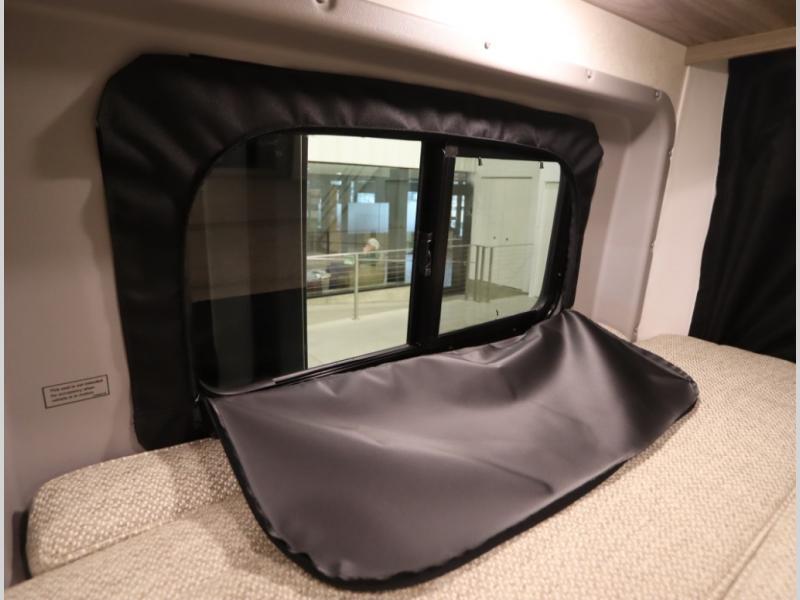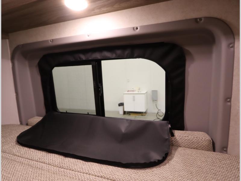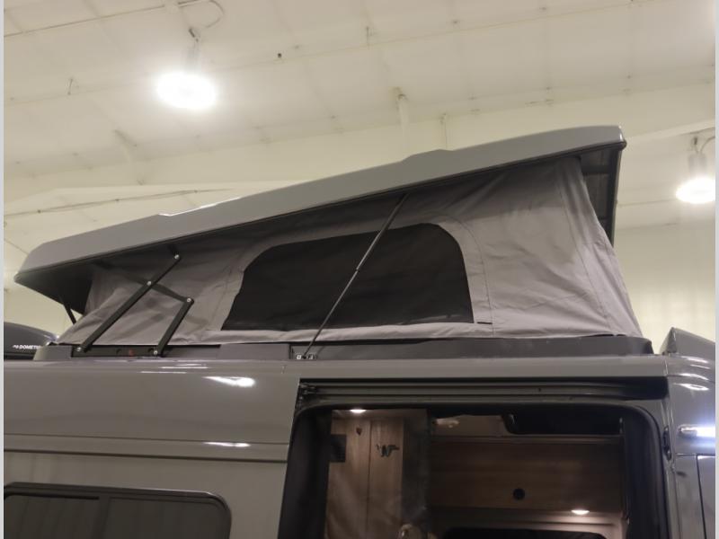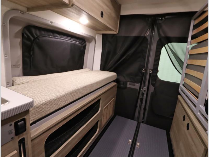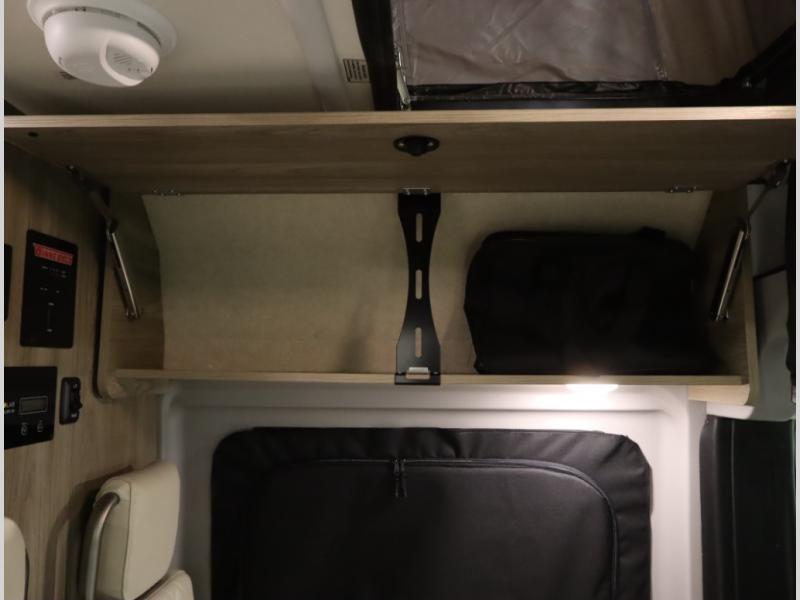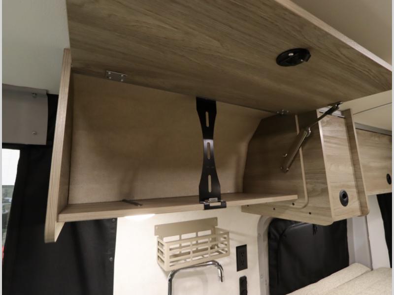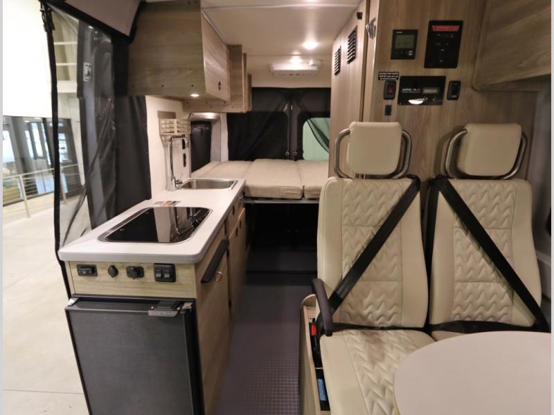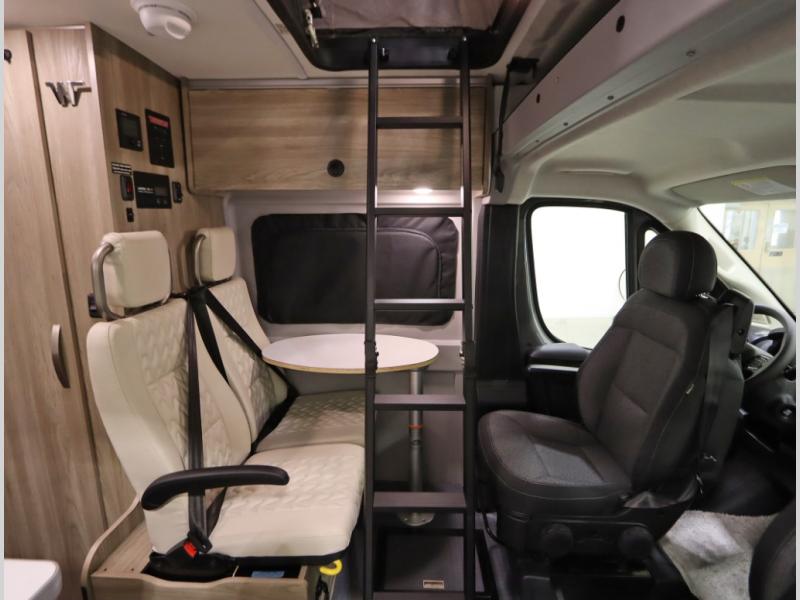 The popular Solis is available with or without the overhead pop top studio loft sleeping surface that includes the Froli deluxe sleep system! Plus you can increase sleeping now with the Luno front cab air mattress for a 30 x 65 in additional sleeping surface. Towards the rear of the van, the standard cross coach sleeping Murphy Bed is available or can be replaced with a sofa bed as well!