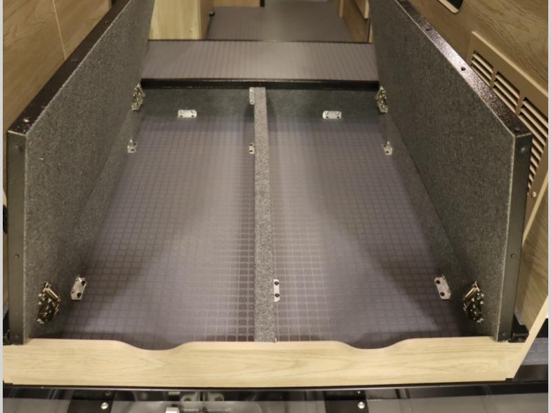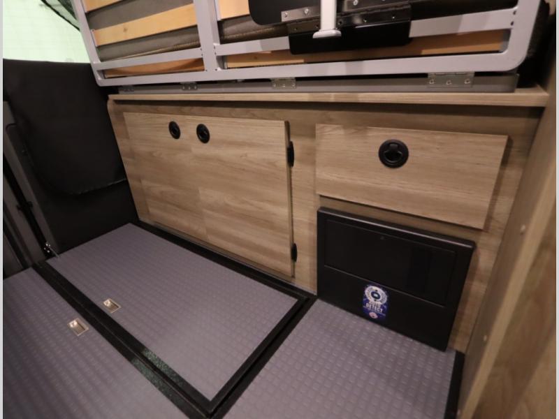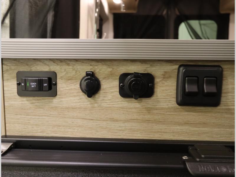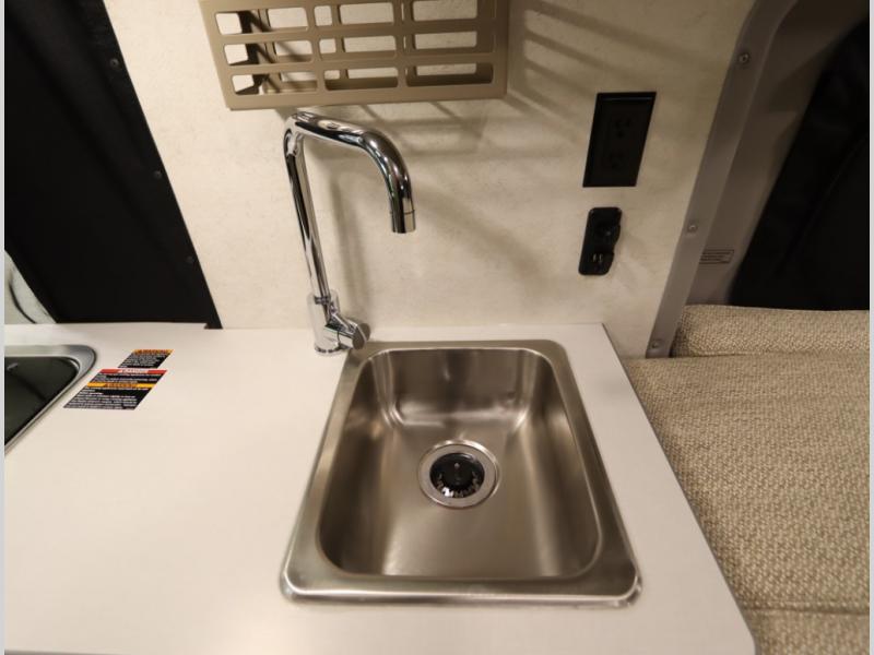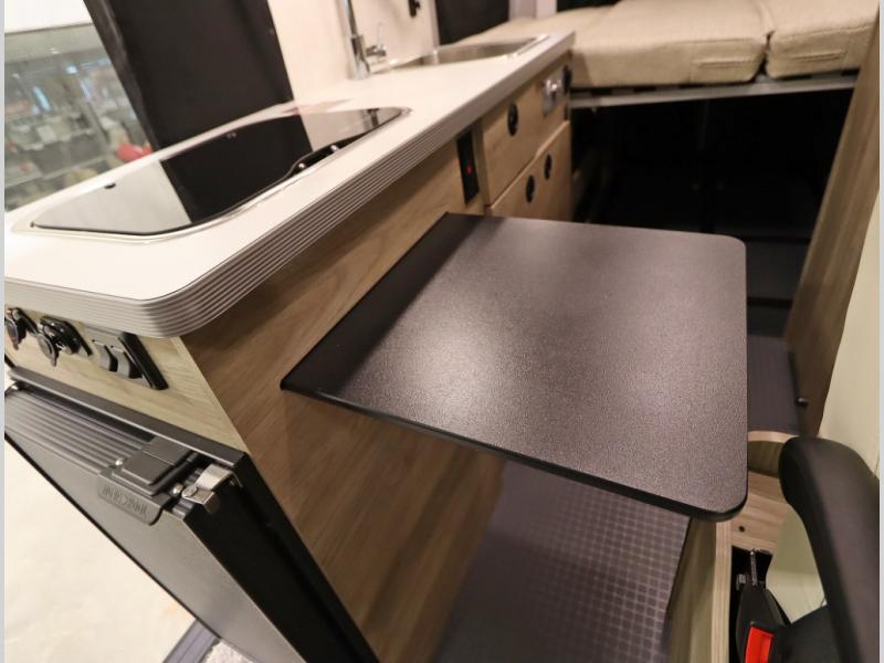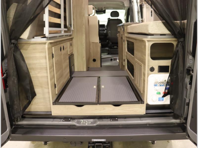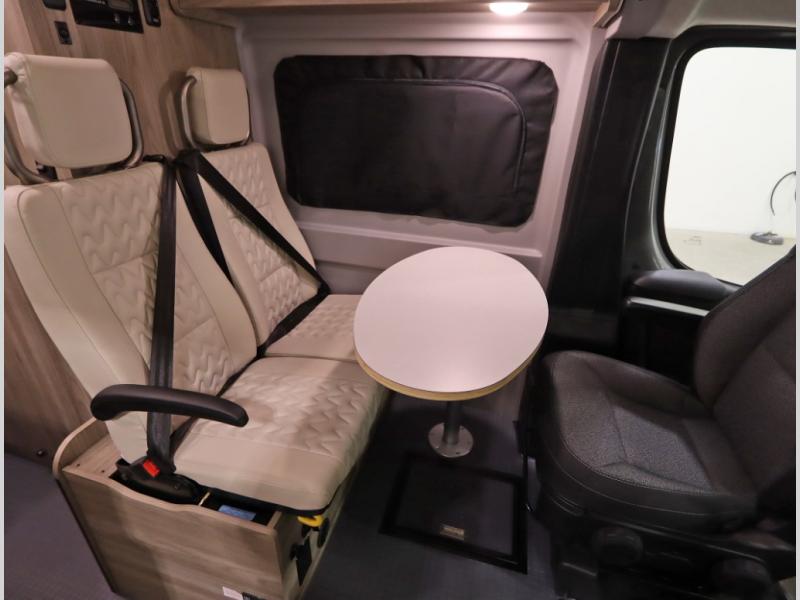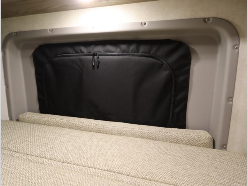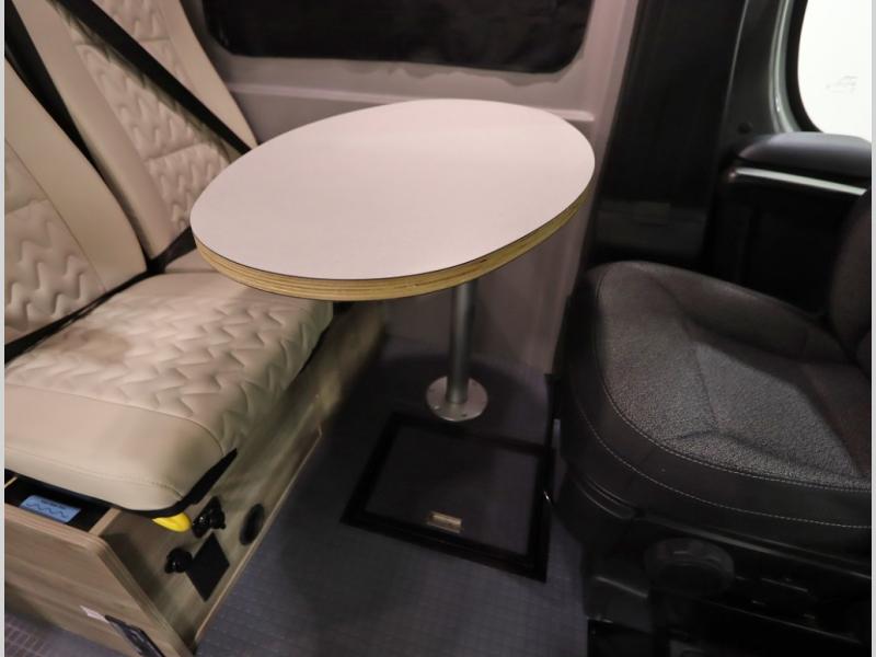 The popular Solis is available with or without the overhead pop top studio loft sleeping surface that includes the Froli deluxe sleep system! Plus you can increase sleeping now with the Luno front cab air mattress for a 30 x 65 in additional sleeping surface. Towards the rear of the van, the standard cross coach sleeping Murphy Bed is available or can be replaced with a sofa bed as well!