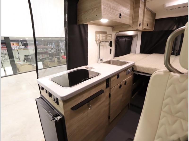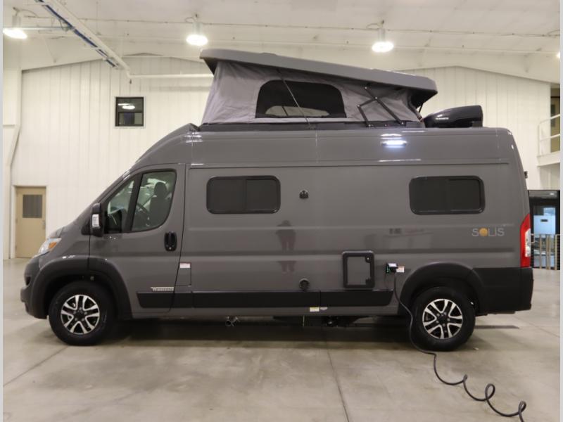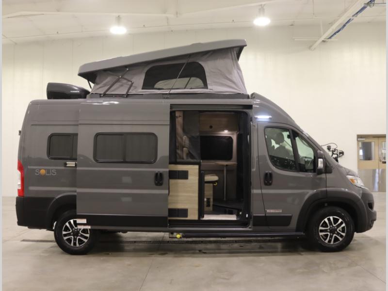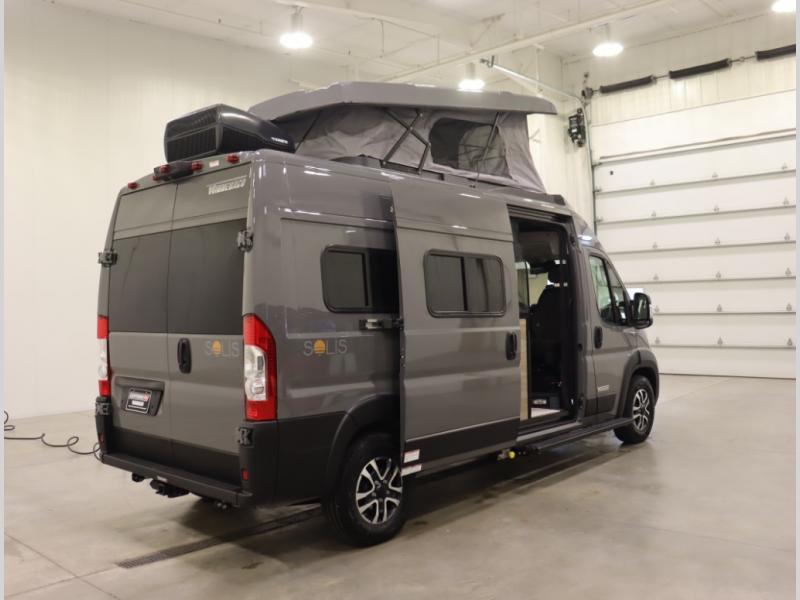 Built on the fuel efficient, and now safety enhanced Ram ProMaster chassis, the Solis features all season insulation and plumbing, a space extending rear annex and Truma Combi Eco hydronic heating and on demand hot water with hot water loop purge. In addition to the sleeping below, the standard fiberglass studio loft pop top easily expands your sleeping space, offers panoramic views and provides a restful night's sleep with the innovative FROLI sleep system.