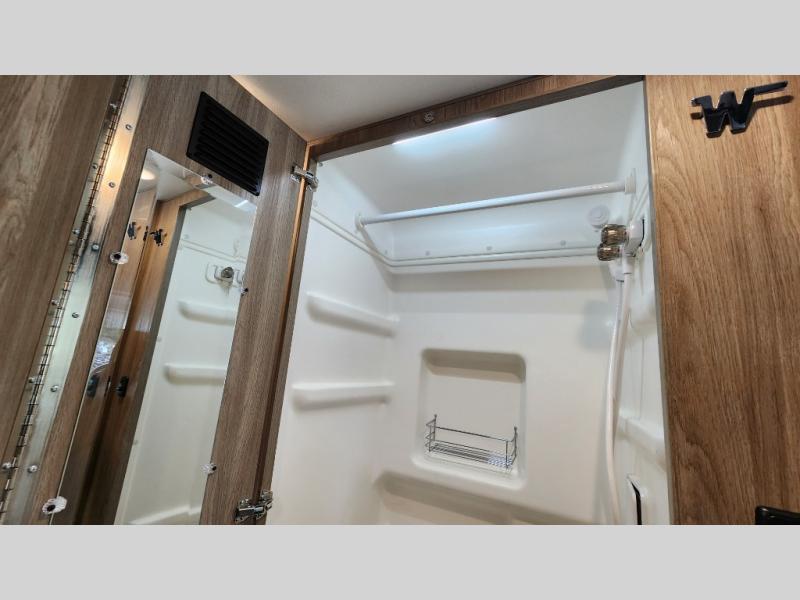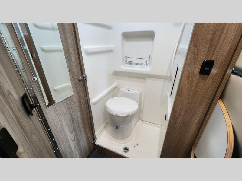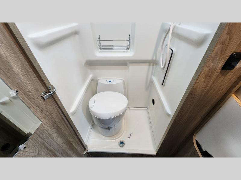 Rear Wet Bath – Fully enclosed with a cassette toilet, shower, and sink—your own mobile bathroom