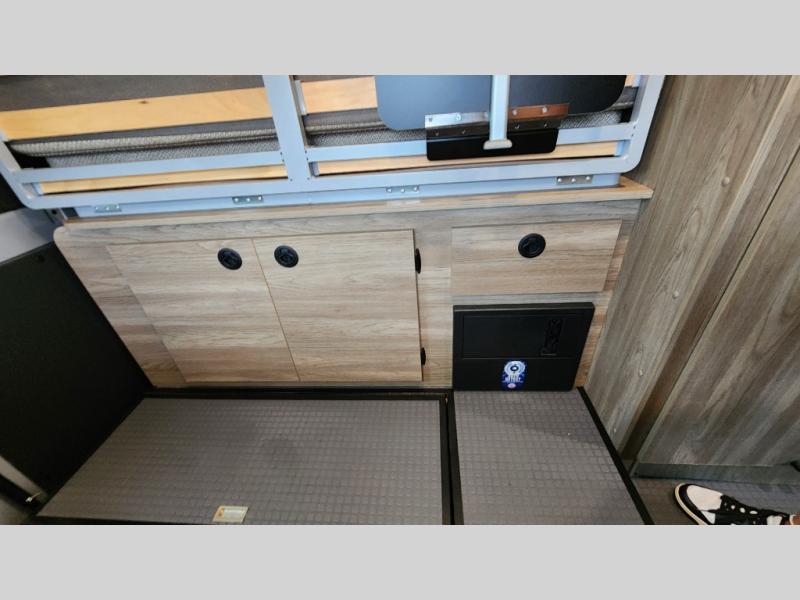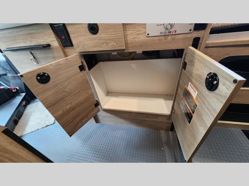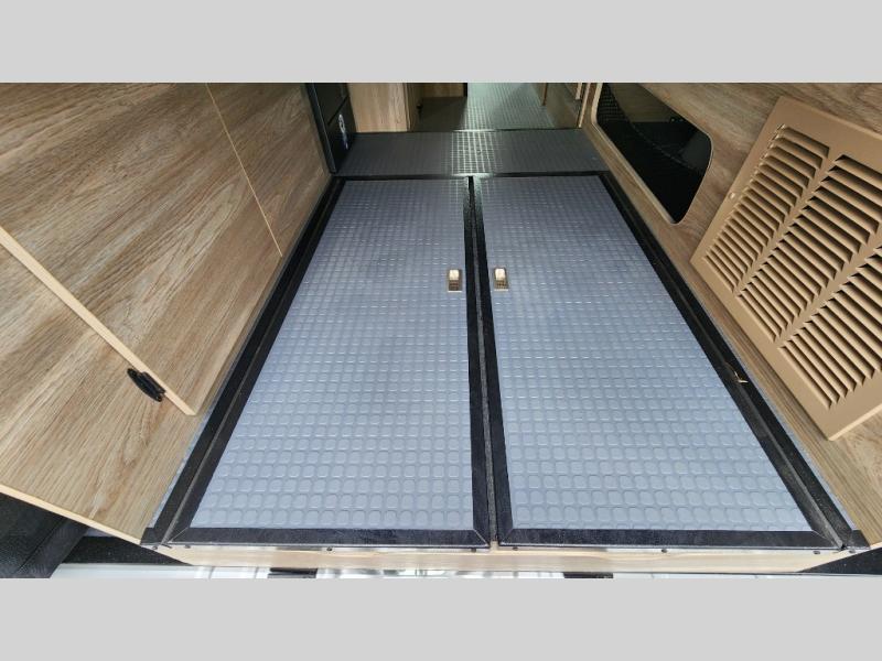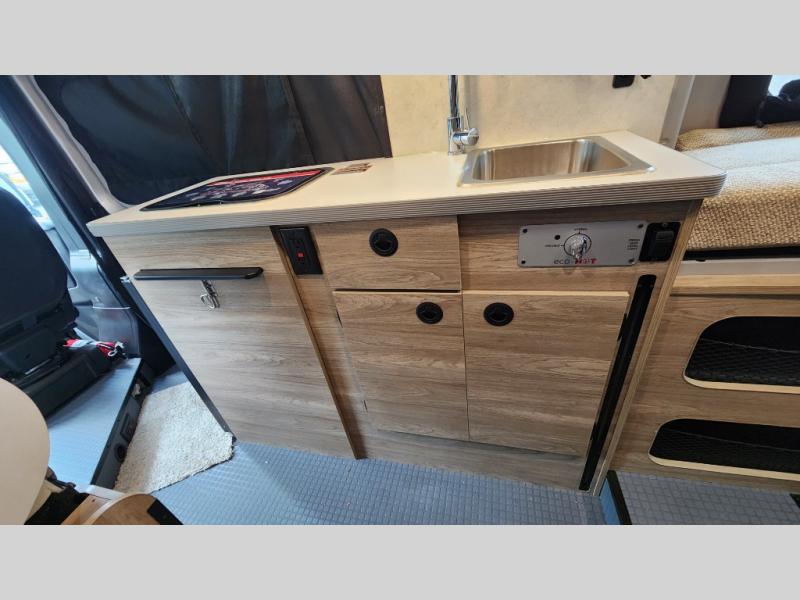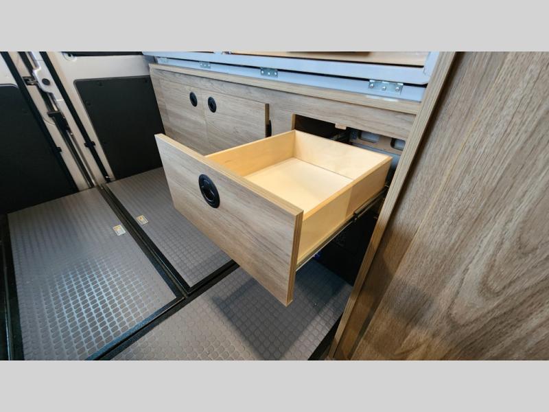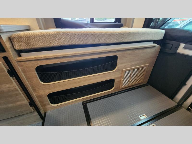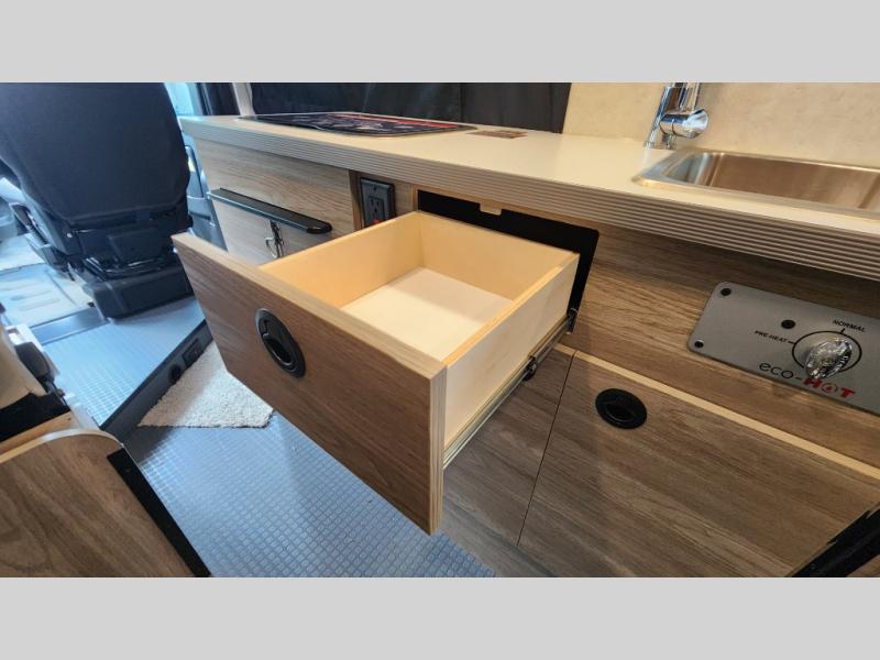 12V Refrigerator & Ample Storage – Store your essentials with smart, space-saving cabinetry