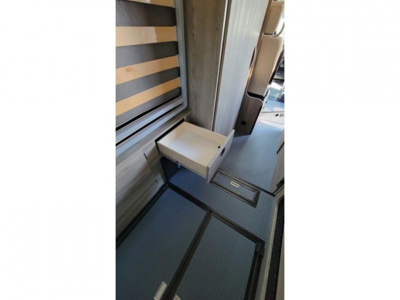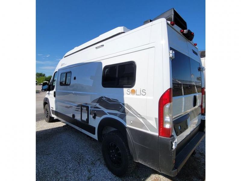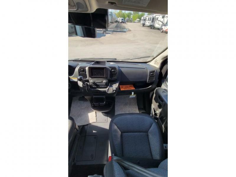 Each Solis Class B gas motorhome by Winnebago sits upon a fuel-efficient Ram ProMaster chassis with a 3.6L V6 engine to power your adventures. You will love the cab conveniences that make each trip enjoyable, like the radio/review monitor system touchscreen and the crosswind assist to keep you steady on the road. Some of the hassle-free amenities you will appreciate are the exterior wash station, the Eco-Hot water system, and the water center control panel located inside the right rear door. Head indoors to find heavy-duty vinyl flooring throughout, a laminate countertop and a stainless steel sink in the galley, plus tinted coach windows for added privacy. The Solis also features off-grid capabilities with its two deep-cycle Group 31 batteries and 220-watt flexible surface solar panel with a controller. Adventures awaits in the Solis Class B gas motorhome!