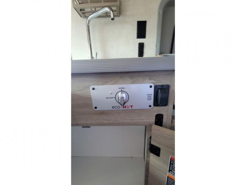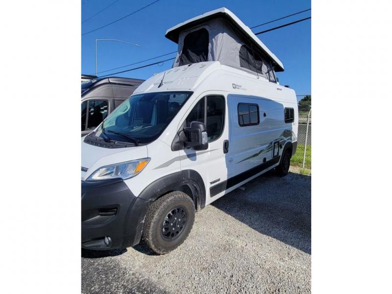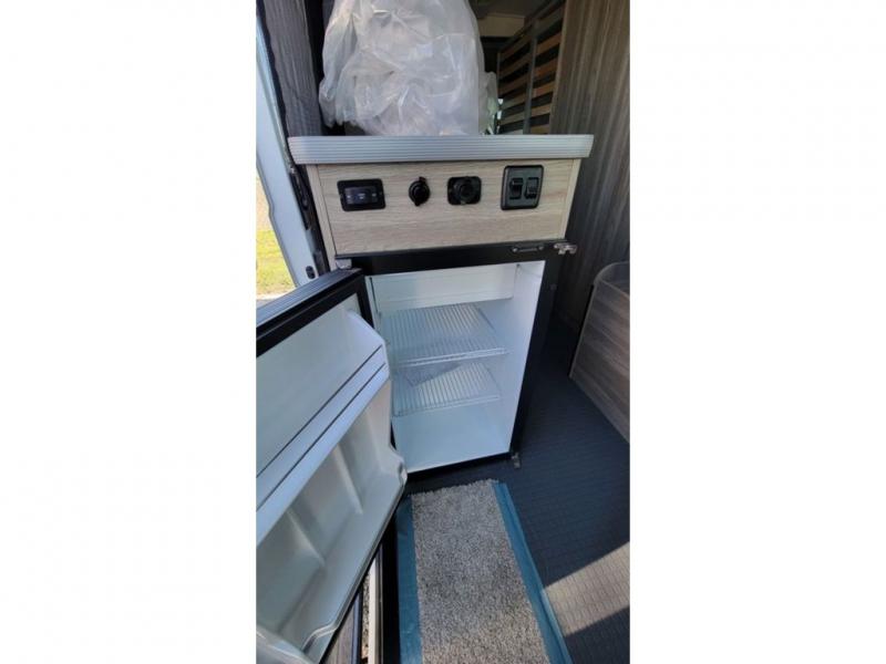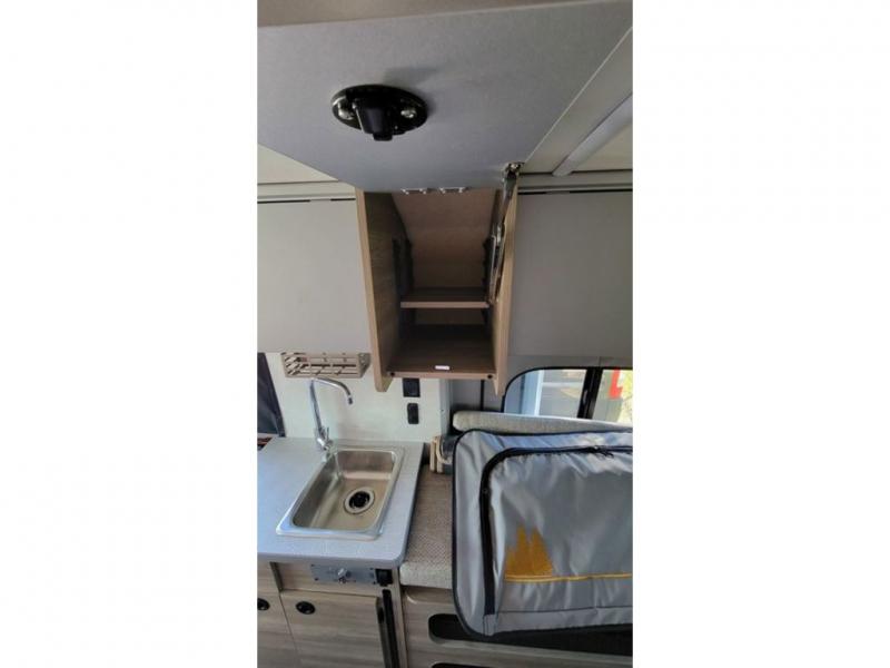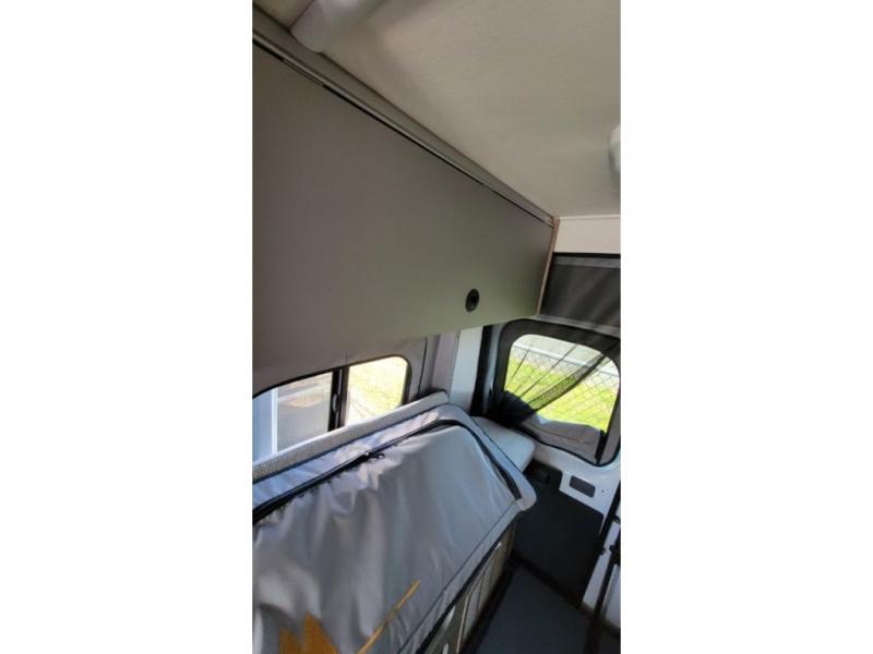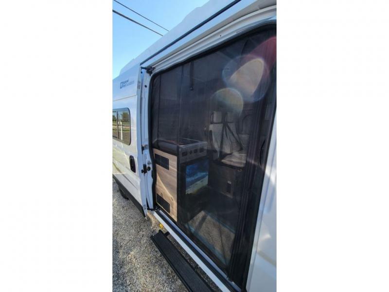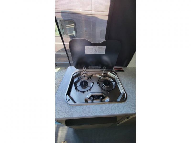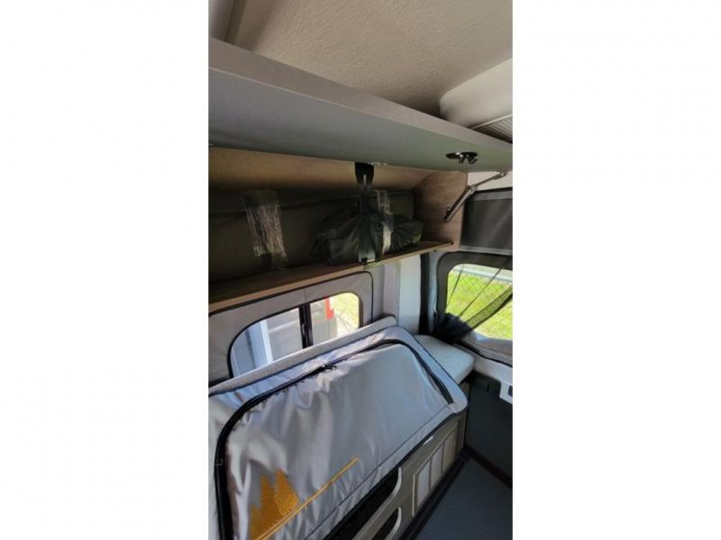 Enjoy a weekend ride in the mountains or make it an overnight stay with versatile sleeping options in this camper van. You'll find the Murphy+ bed in the back will provide a great night's rest, or you can choose the optional sofa/bed with added belted seating if you have more tag-alongs. And of course the little ones will love the pop-top sleeping area to climb into each night. After you've freshened up in the convenient wet bath, prepare breakfast on the two burner range, and the milk and eggs can go back in the 3.0 cu. ft. single door refrigerator/freezer. This model also includes rear double doors with screens to let the breeze in and keep bugs out!