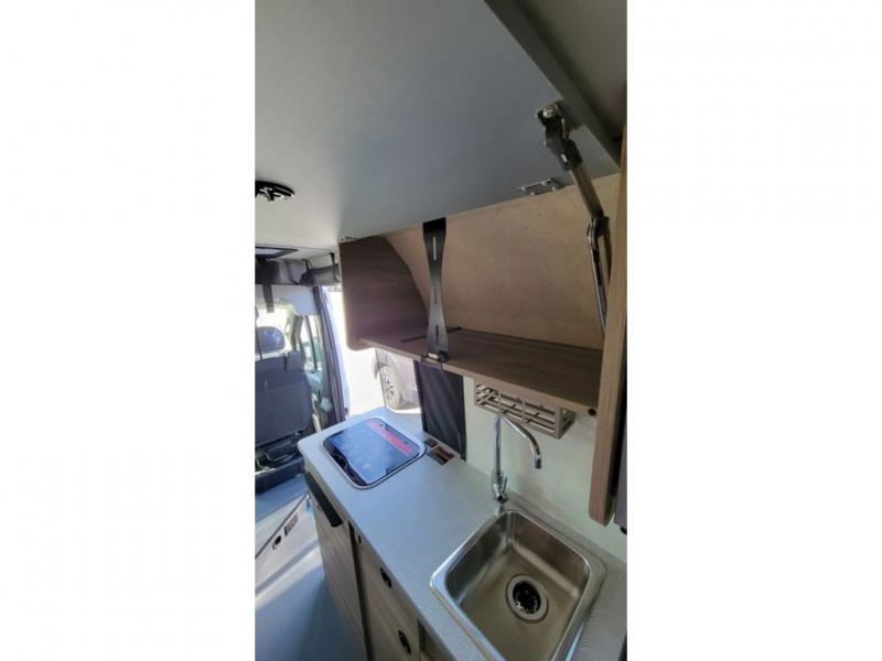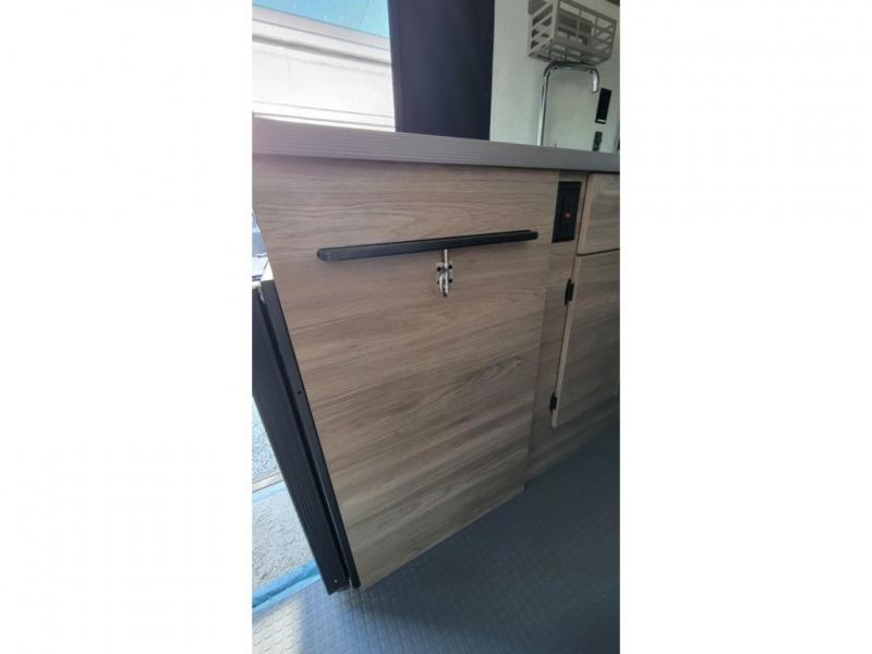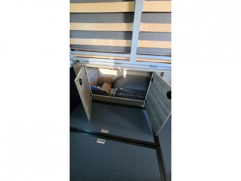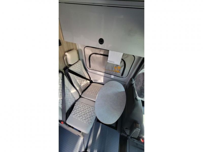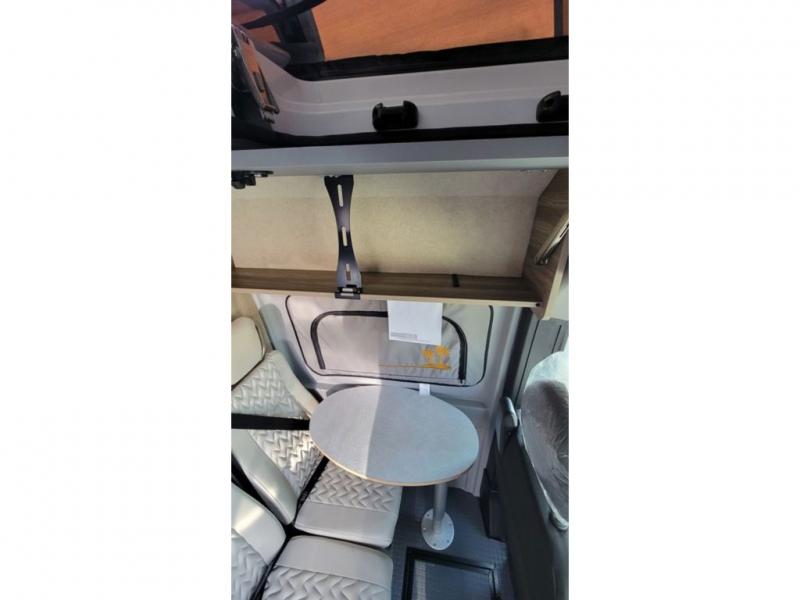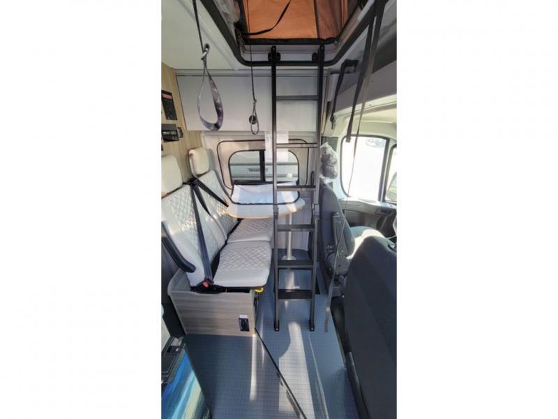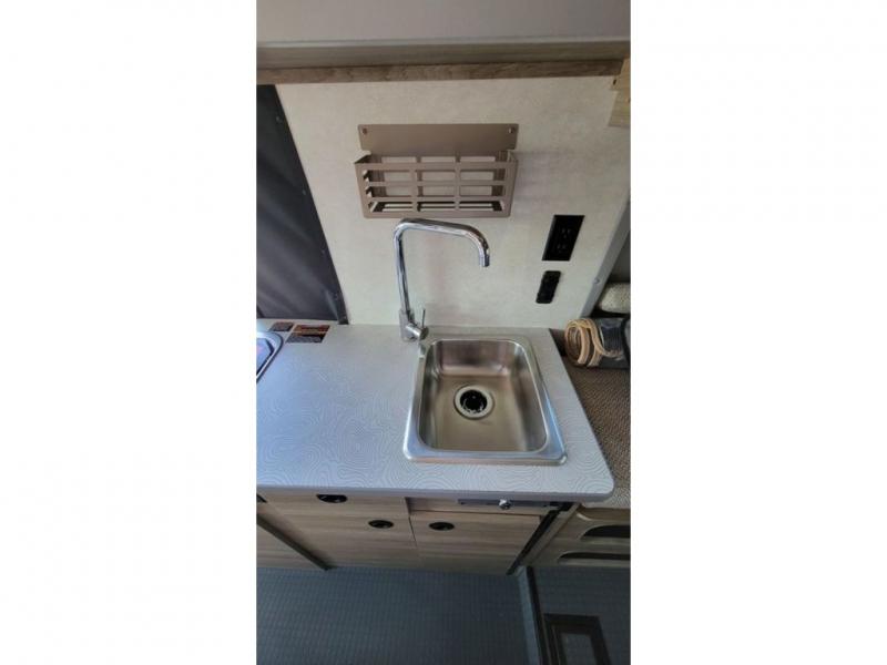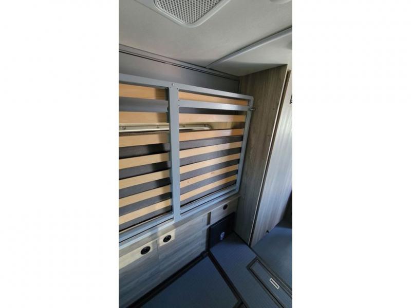Enjoy a weekend ride in the mountains or make it an overnight stay with versatile sleeping options in this camper van. You'll find the Murphy+ bed in the back will provide a great night's rest, or you can choose the optional sofa/bed with added belted seating if you have more tag-alongs. And of course the little ones will love the pop-top sleeping area to climb into each night. After you've freshened up in the convenient wet bath, prepare breakfast on the two burner range, and the milk and eggs can go back in the 3.0 cu. ft. single door refrigerator/freezer. This model also includes rear double doors with screens to let the breeze in and keep bugs out!