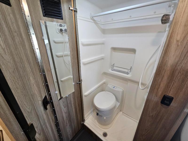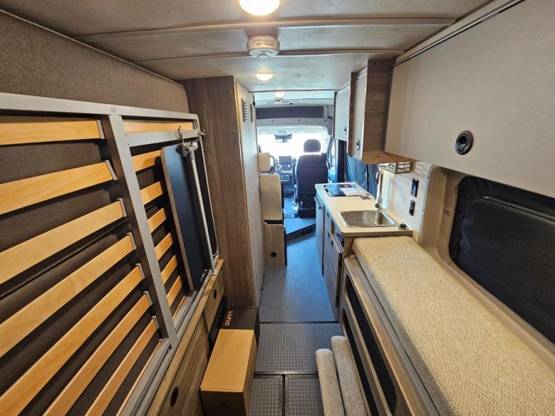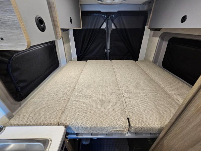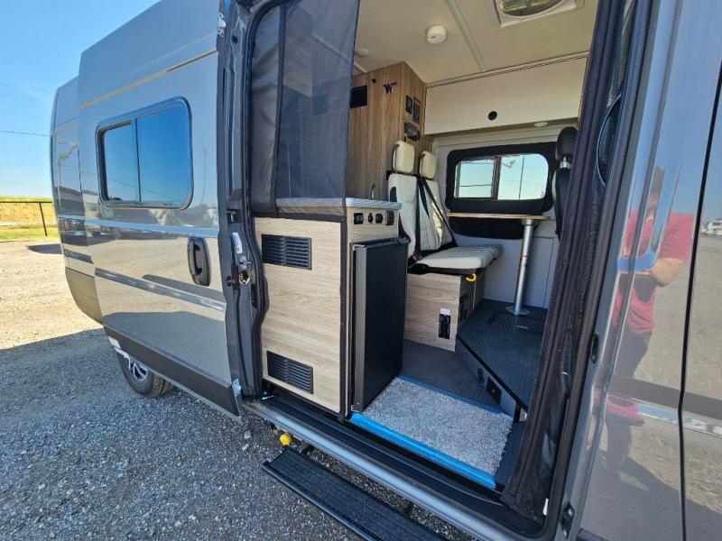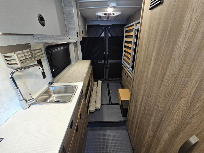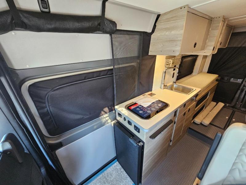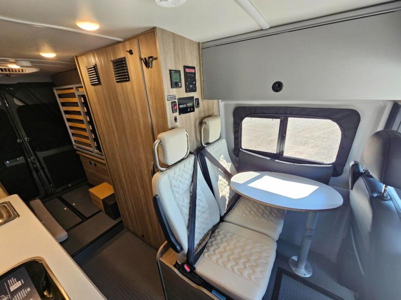 This camper van with an L-track storage system is perfect for those needing more storage space for their hiking and biking gear. You can stay powered up with the Cummins Onan QG 2800i gas generator, and there is a Coleman Mach 10NDQ A/C with directional vents that will allow you to come inside to cool off after a trail ride. A Murphy+ bed comes standard, and any guests that tag along can sleep in the pop-top sleeping area! If you choose to remove the pop-top, you'll enjoy the deluxe powered ventilator fan instead. You'll find the wet bath to come in handy when you want to clean up, and the dinette seating with a removable pedestal table will provide a place to enjoy your dinner at.
