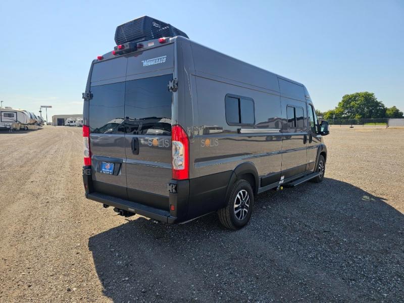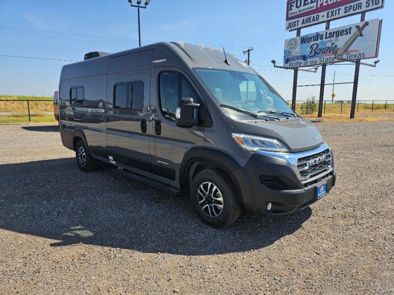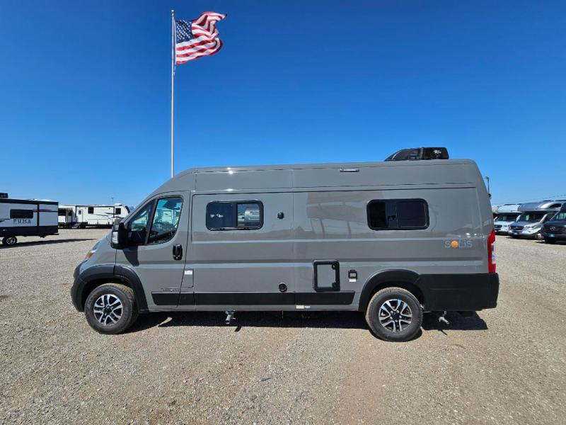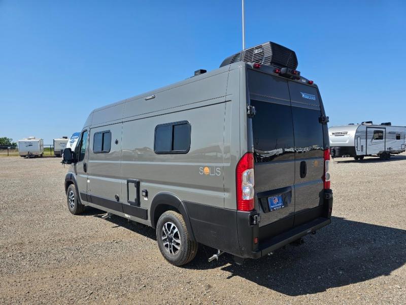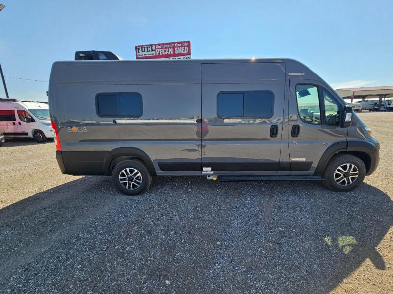 Each Solis Class B gas motorhome by Winnebago sits upon a fuel-efficient Ram ProMaster chassis with a 3.6L V6 engine to power your adventures. You will love the cab conveniences that make each trip enjoyable, like the radio/review monitor system touchscreen and the crosswind assist to keep you steady on the road. Some of the hassle-free amenities you will appreciate are the exterior wash station, the Eco-Hot water system, and the water center control panel located inside the right rear door. Head indoors to find heavy-duty vinyl flooring throughout, a laminate countertop and a stainless steel sink in the galley, plus tinted coach windows for added privacy. The Solis also features off-grid capabilities with its two deep-cycle Group 31 batteries and 220-watt flexible surface solar panel with a controller. Adventures awaits in the Solis Class B gas motorhome!