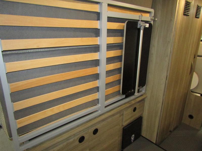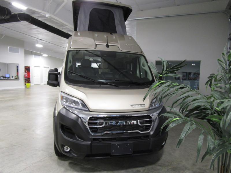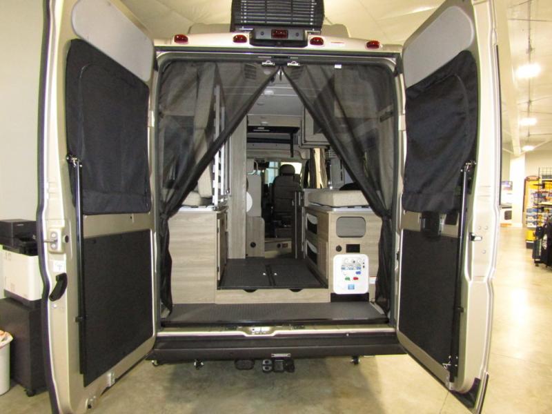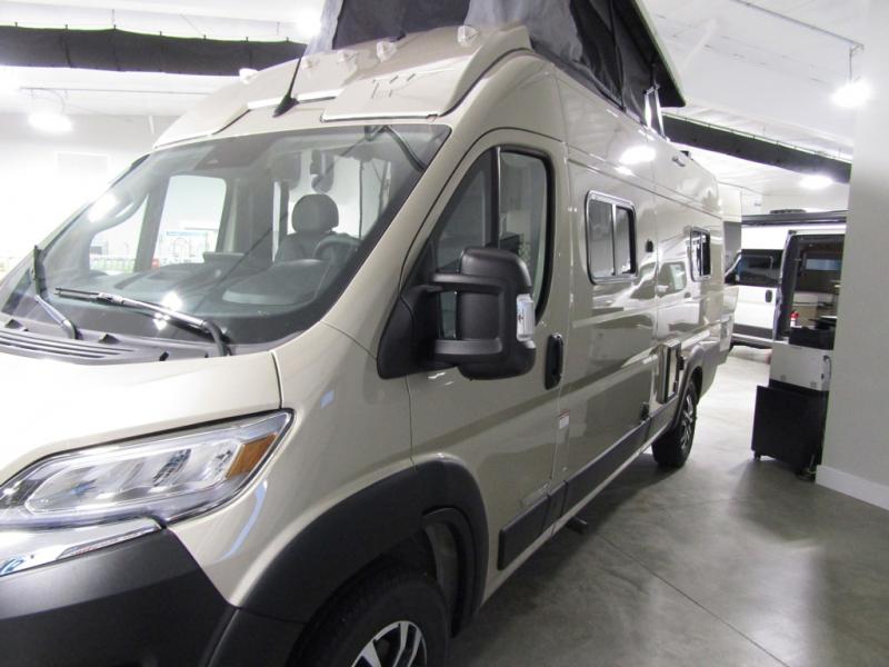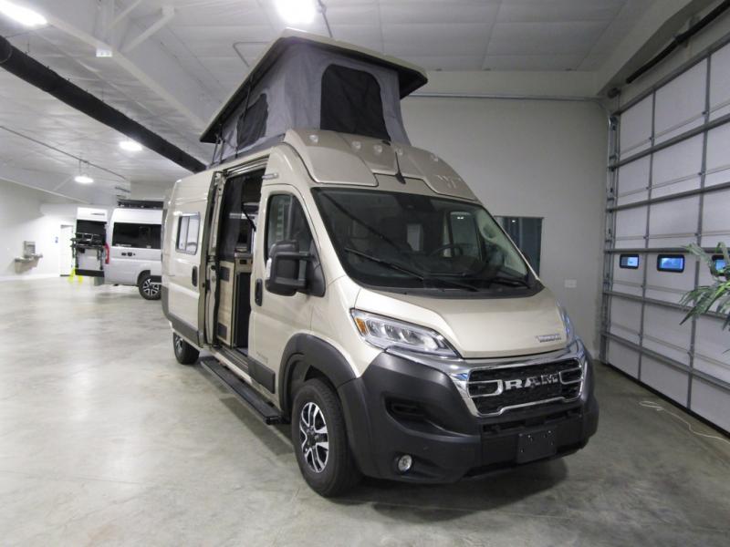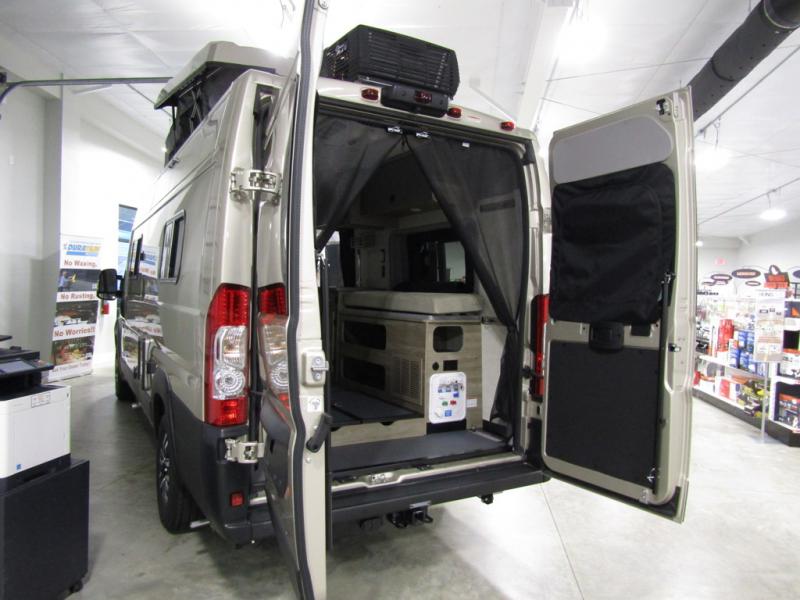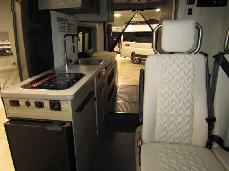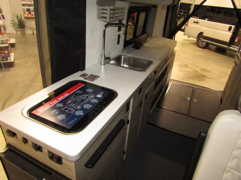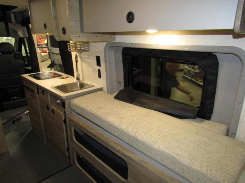 This camper van with an L-track storage system is perfect for those needing more storage space for their hiking and biking gear. You can stay powered up with the Cummins Onan QG 2800i gas generator, and there is a Coleman Mach 10NDQ A/C with directional vents that will allow you to come inside to cool off after a trail ride. A Murphy+ bed comes standard, and any guests that tag along can sleep in the pop-top sleeping area! If you choose to remove the pop-top, you'll enjoy the deluxe powered ventilator fan instead. You'll find the wet bath to come in handy when you want to clean up, and the dinette seating with a removable pedestal table will provide a place to enjoy your dinner at.