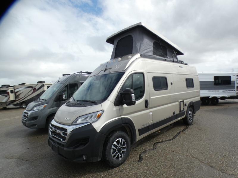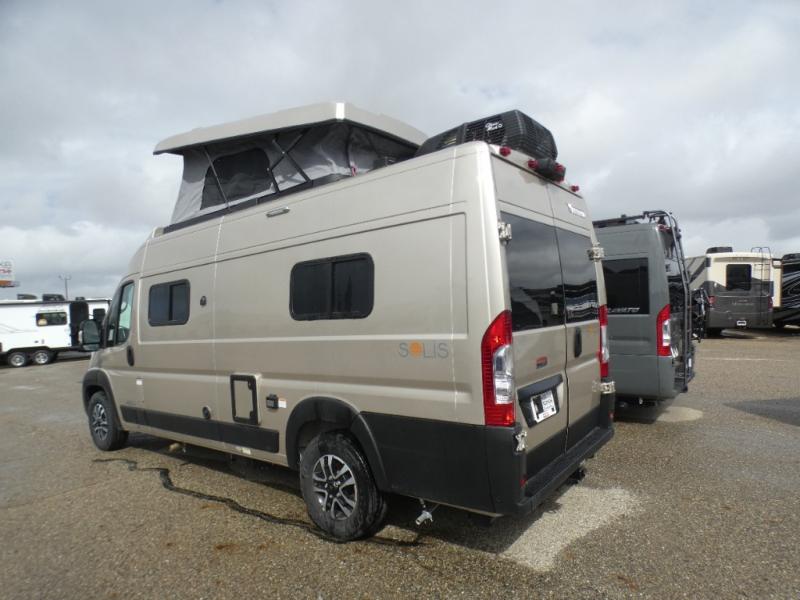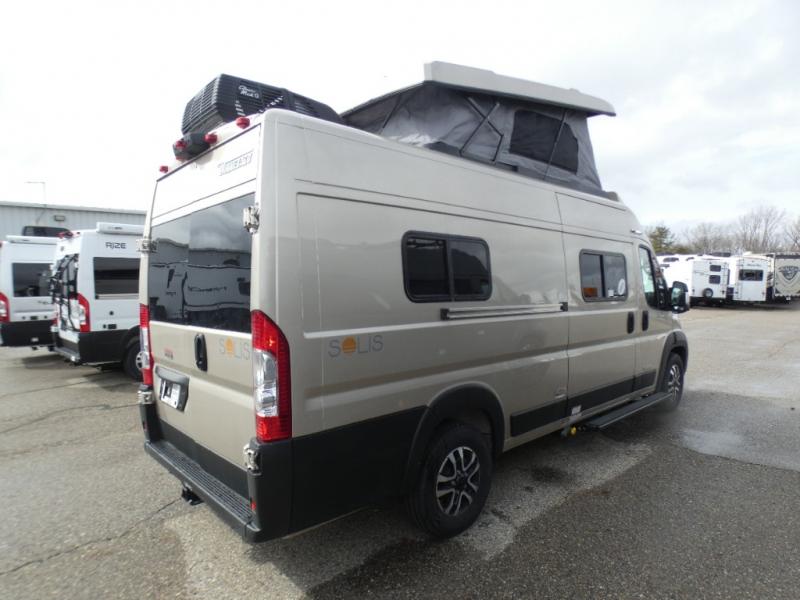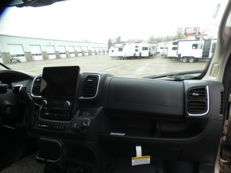 Each Solis Class B gas motorhome by Winnebago sits upon a fuel-efficient Ram ProMaster chassis with a 3.6L V6 engine to power your adventures. You will love the cab conveniences that make each trip enjoyable, like the radio/review monitor system touchscreen and the crosswind assist to keep you steady on the road. Some of the hassle-free amenities you will appreciate are the exterior wash station, the Eco-Hot water system, and the water center control panel located inside the right rear door. Head indoors to find heavy-duty vinyl flooring throughout, a laminate countertop and a stainless steel sink in the galley, plus tinted coach windows for added privacy. The Solis also features off-grid capabilities with its two deep-cycle Group 31 batteries and 220-watt flexible surface solar panel with a controller. Adventures awaits in the Solis Class B gas motorhome!