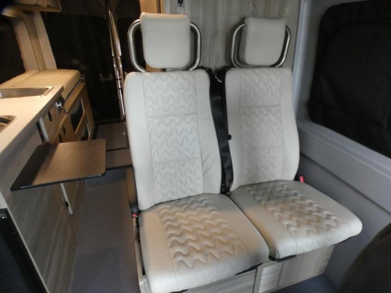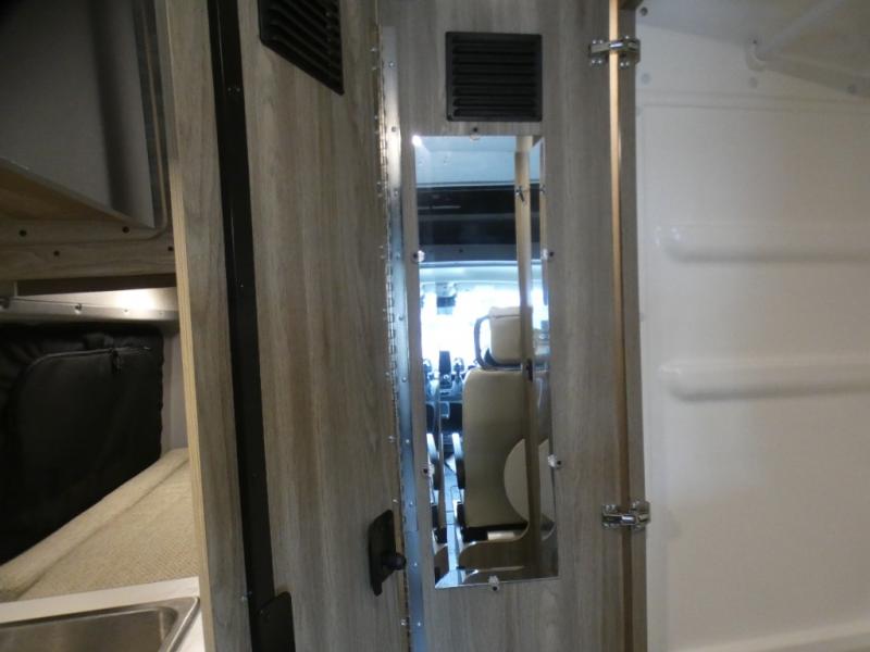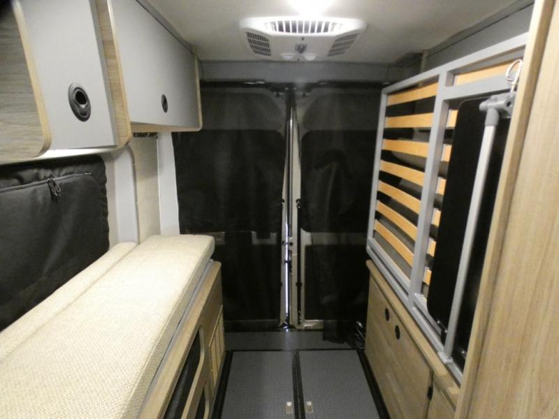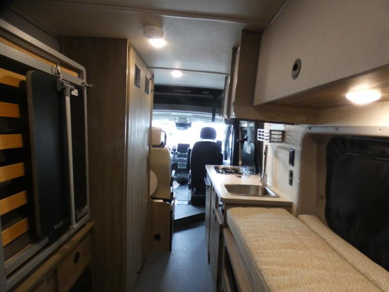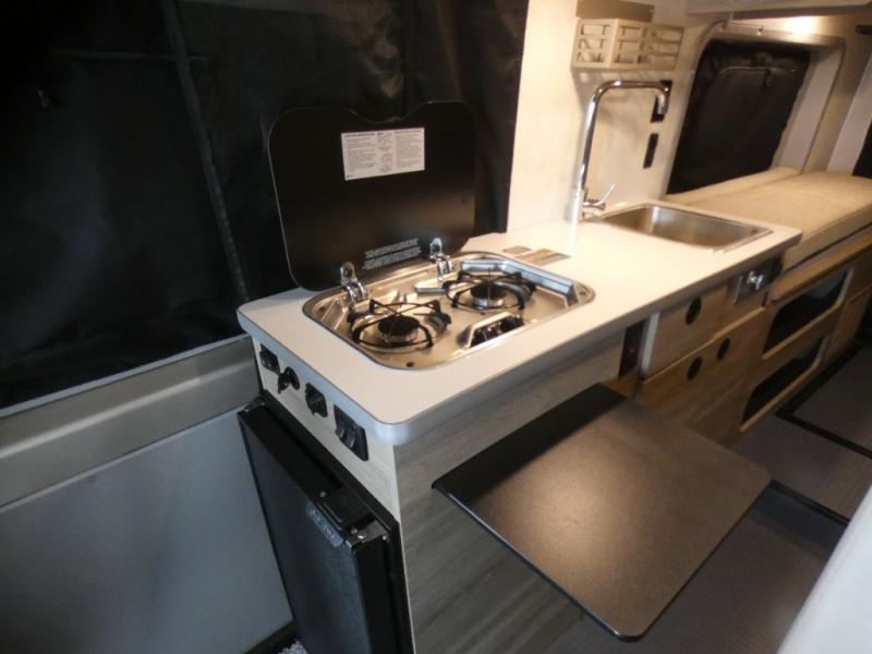 This camper van with an L-track storage system is perfect for those needing more storage space for their hiking and biking gear. You can stay powered up with the Cummins Onan QG 2800i gas generator, and there is a Coleman Mach 10NDQ A/C with directional vents that will allow you to come inside to cool off after a trail ride. A Murphy+ bed comes standard, and any guests that tag along can sleep in the pop-top sleeping area! You'll find the wet bath to come in handy when you want to clean up, and the dinette seating with a removable pedestal table will provide a place to enjoy your dinner at.