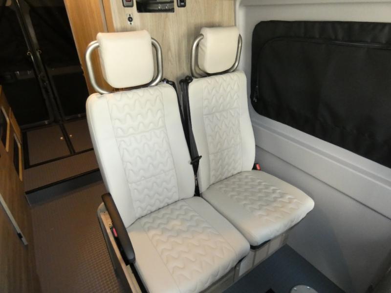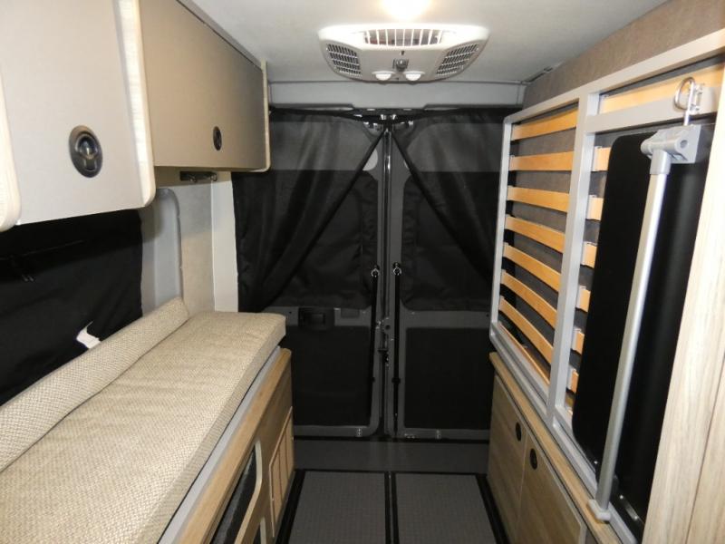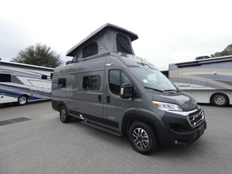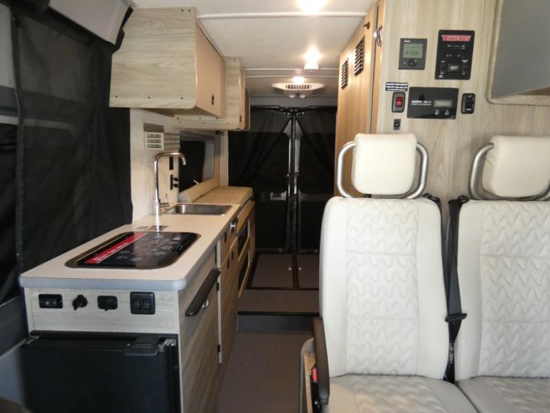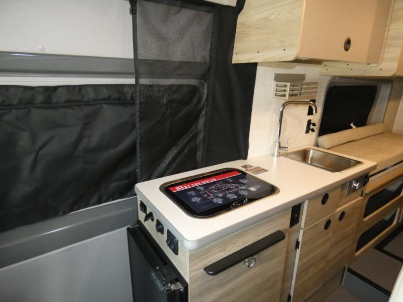 This camper van with an L-track storage system is perfect for those needing more storage space for their hiking and biking gear. You can stay powered up with the Cummins Onan QG 2800i gas generator, and there is a Coleman Mach 10NDQ A/C with directional vents that will allow you to come inside to cool off after a trail ride. A Murphy+ bed comes standard, and any guests that tag along can sleep in the pop-top sleeping area! If you choose to remove the pop-top, you'll enjoy the deluxe powered ventilator fan instead. You'll find the wet bath to come in handy when you want to clean up, and the dinette seating with a removable pedestal table will provide a place to enjoy your dinner at.