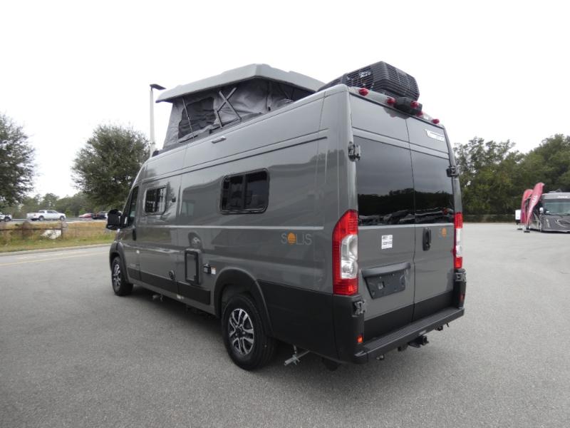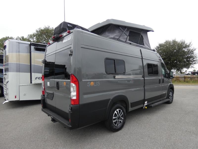 Each Solis Class B gas motorhome by Winnebago sits upon a fuel-efficient Ram ProMaster chassis with a 3.6L V6 engine to power your adventures. You will love the cab conveniences that make each trip enjoyable, like the radio/review monitor system touchscreen and the crosswind assist to keep you steady on the road. Some of the hassle-free amenities you will appreciate are the exterior wash station, the Eco-Hot water system, and the water center control panel located inside the right rear door. Head indoors to find heavy-duty vinyl flooring throughout, a laminate countertop and a stainless steel sink in the galley, plus tinted coach windows for added privacy. The Solis also features off-grid capabilities with its two deep-cycle Group 31 batteries and 220-watt flexible surface solar panel with a controller. Adventures awaits in the Solis Class B gas motorhome!