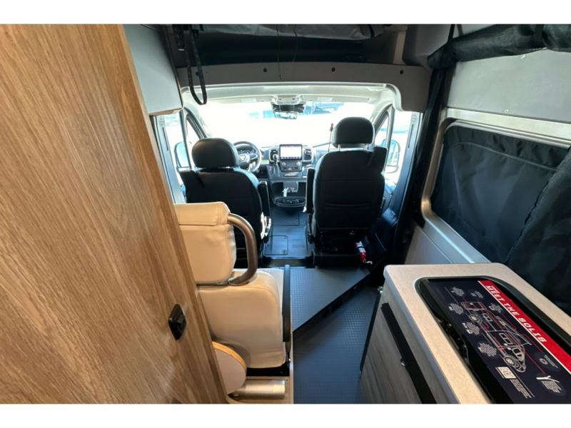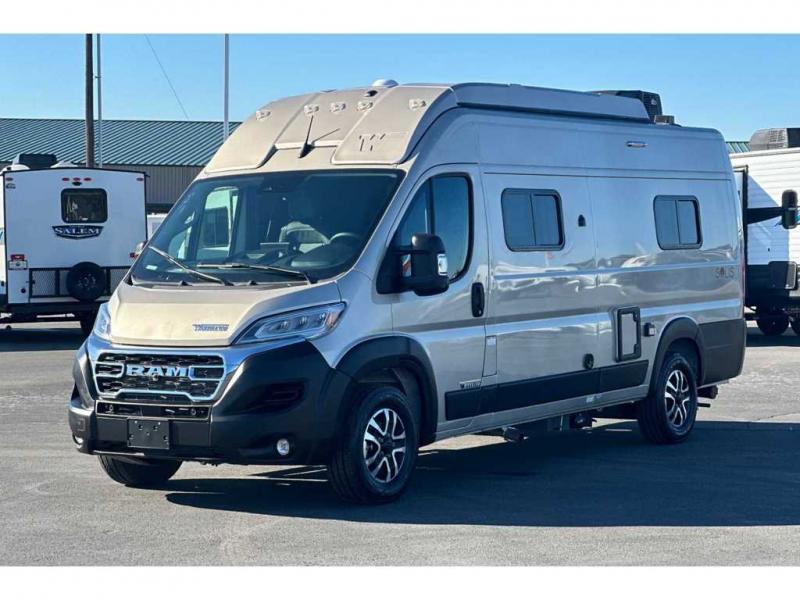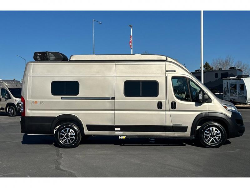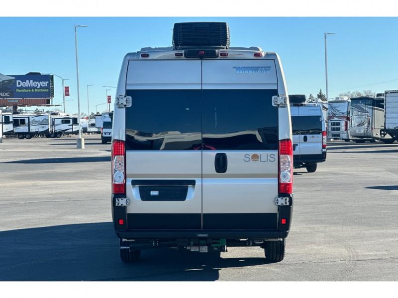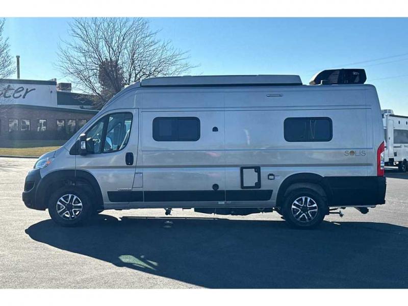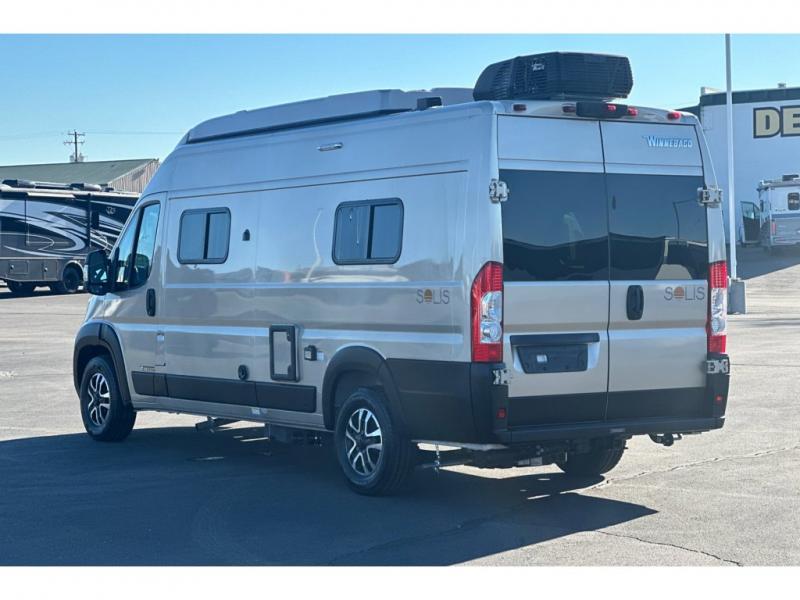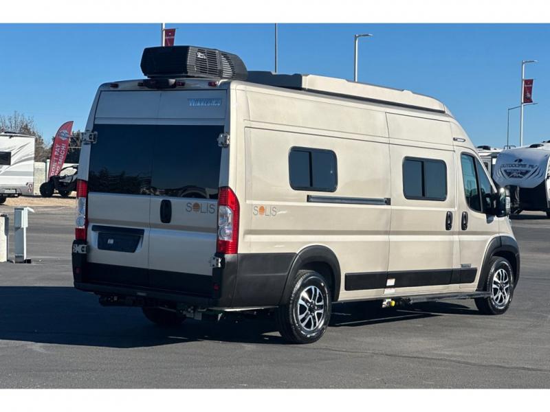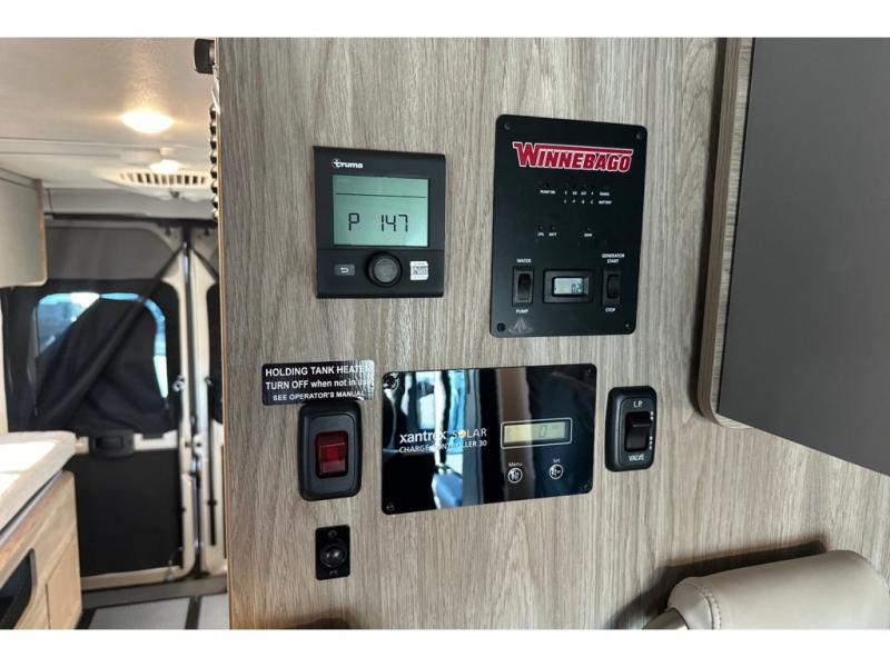 Each Solis Class B gas motorhome by Winnebago sits upon a fuel-efficient Ram ProMaster chassis with a 3.6L V6 engine to power your adventures. You will love the cab conveniences that make each trip enjoyable, like the radio/review monitor system touchscreen and the crosswind assist to keep you steady on the road. Some of the hassle-free amenities you will appreciate are the exterior wash station, the Eco-Hot water system, and the water center control panel located inside the right rear door. Head indoors to find heavy-duty vinyl flooring throughout, a laminate countertop and a stainless steel sink in the galley, plus tinted coach windows for added privacy. The Solis also features off-grid capabilities with its two deep-cycle Group 31 batteries and 220-watt flexible surface solar panel with a controller. Adventures awaits in the Solis Class B gas motorhome!
