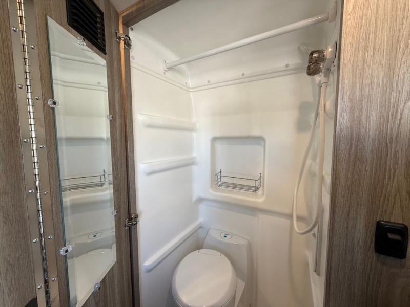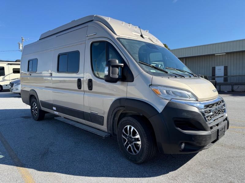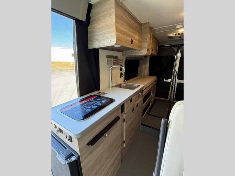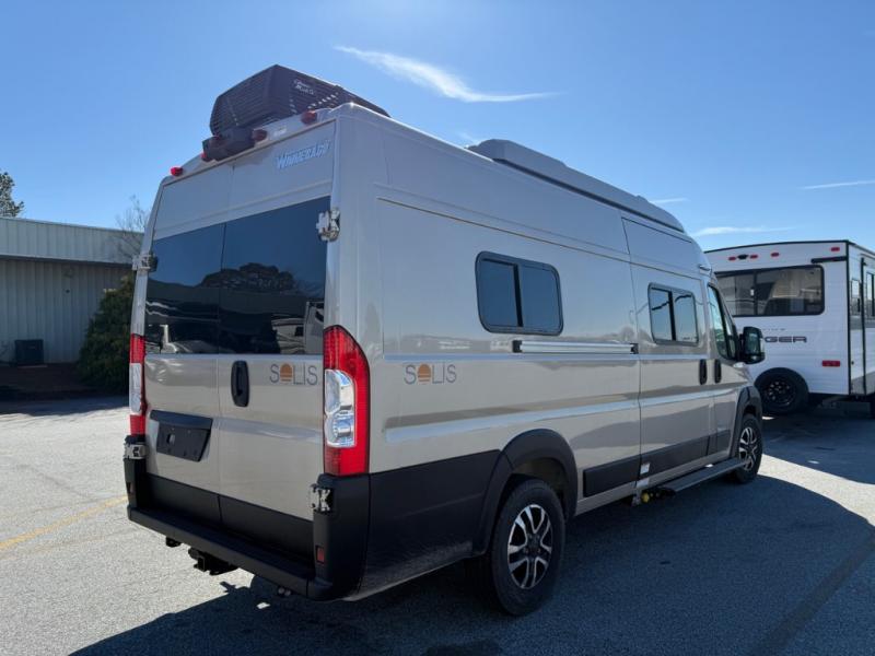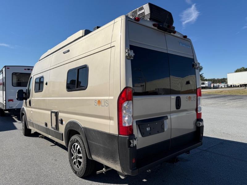 Each Solis Class B gas motorhome by Winnebago sits upon a fuel-efficient Ram ProMaster chassis with a 3.6L V6 engine to power your adventures. You will love the cab conveniences that make each trip enjoyable, like the radio/review monitor system touchscreen and the crosswind assist to keep you steady on the road. Some of the hassle-free amenities you will appreciate are the exterior wash station, the Eco-Hot water system, and the water center control panel located inside the right rear door. Head indoors to find heavy-duty vinyl flooring throughout, a laminate countertop and a stainless steel sink in the galley, plus tinted coach windows for added privacy. The Solis also features off-grid capabilities with its two deep-cycle Group 31 batteries and 220-watt flexible surface solar panel with a controller. Adventures awaits in the Solis Class B gas motorhome!