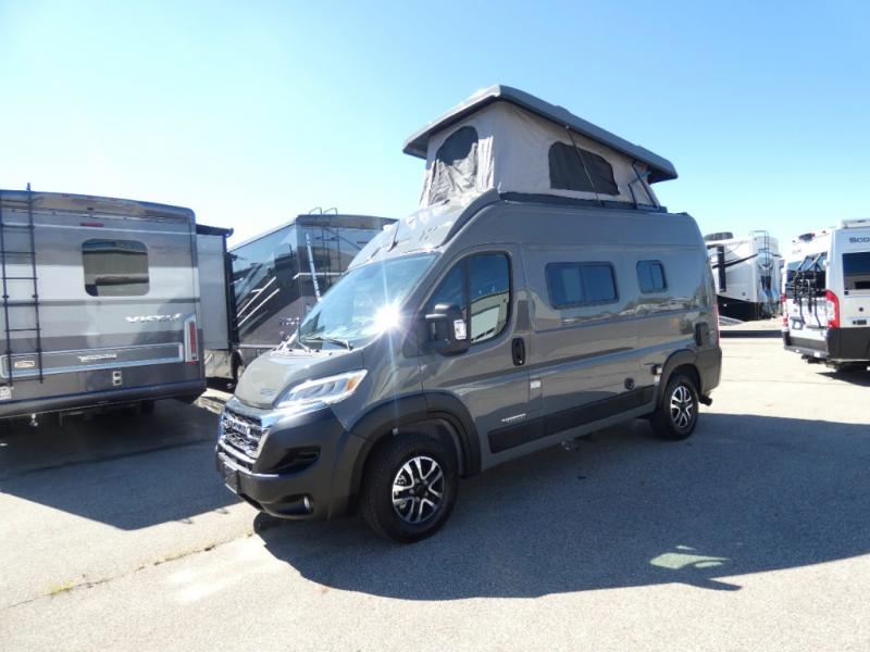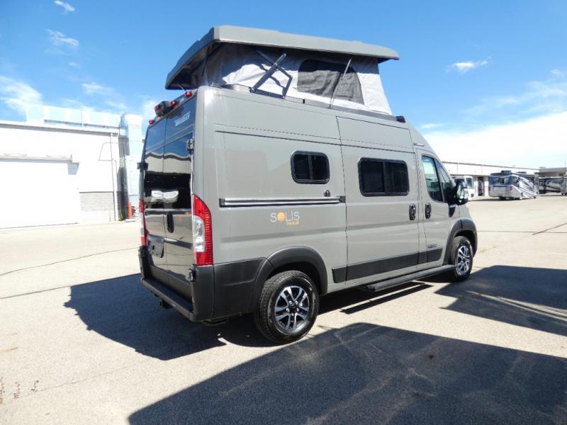 If you want the versatility for your backcountry excursions, and the ability to navigate urban areas, then you need one of these Winnebago Solis Pocket Class B gas motorhomes! A Ram ProMaster 3.6L V6 gas engine with 280HP and a 9-speed automatic transmission power these units to your greatest adventures. Some cab conveniences you will appreciate while driving include a radio/rear view monitor system touch screen, pedestrian automatic emergency braking system, and captain chairs that can slide/swivel/recline and have adjustable headrests. Zippered window coverings give you extra privacy and the heavy duty vinyl flooring throughout is sure to hold up through all of your adventures. A rod and privacy screen is provided for the rear annex to hang your wet clothes or even use as an outdoor shower. Navigate your next adventure with a Solis Pocket!