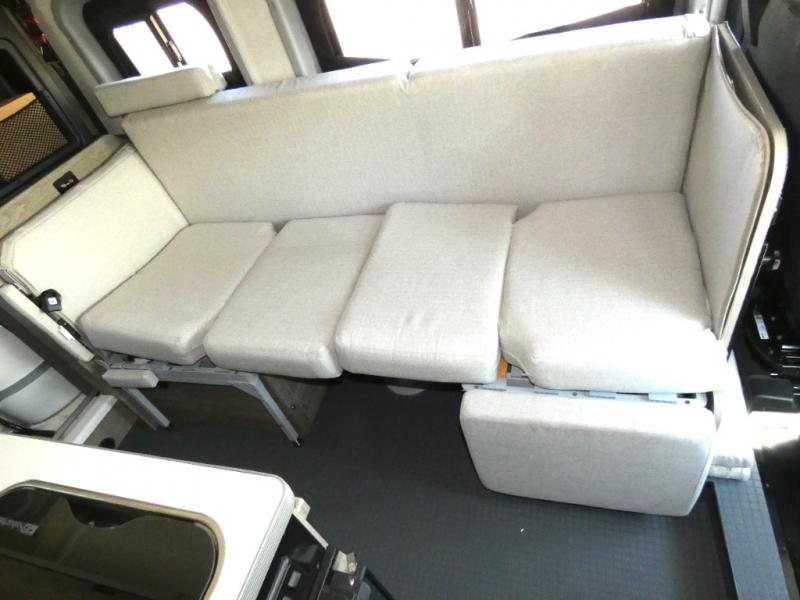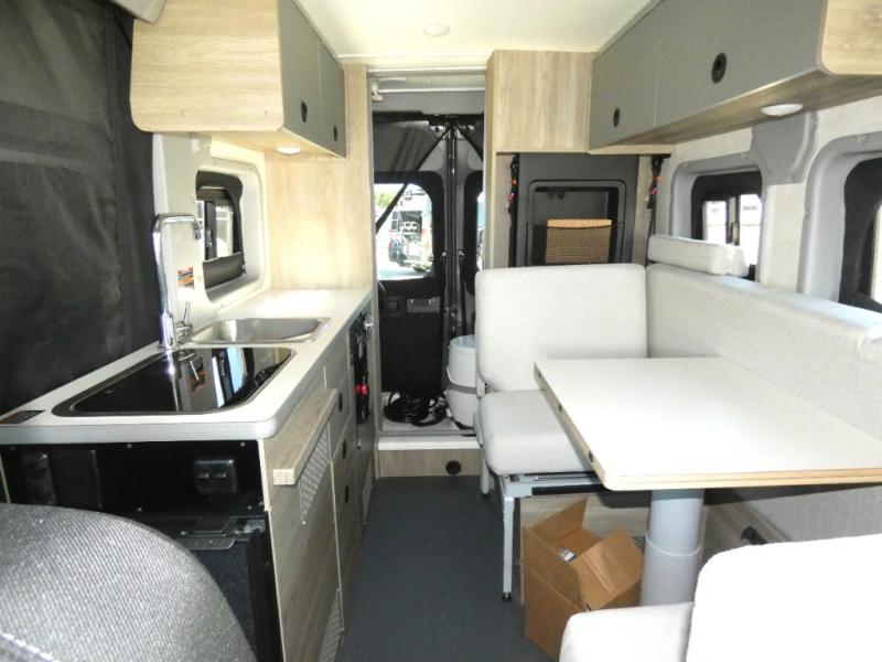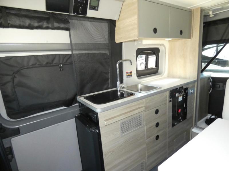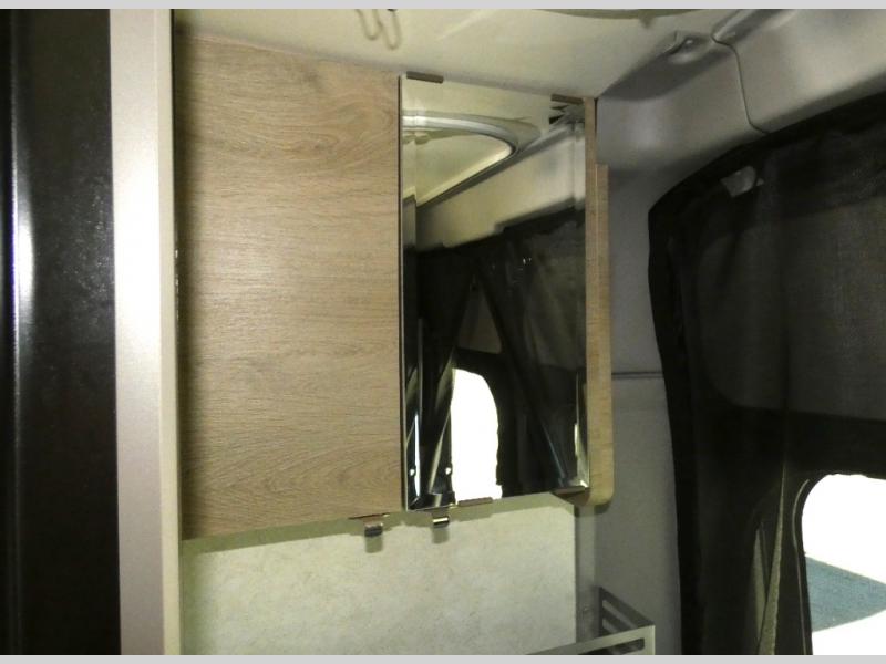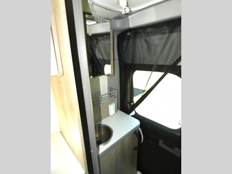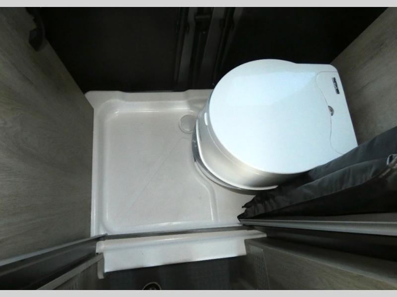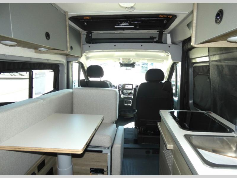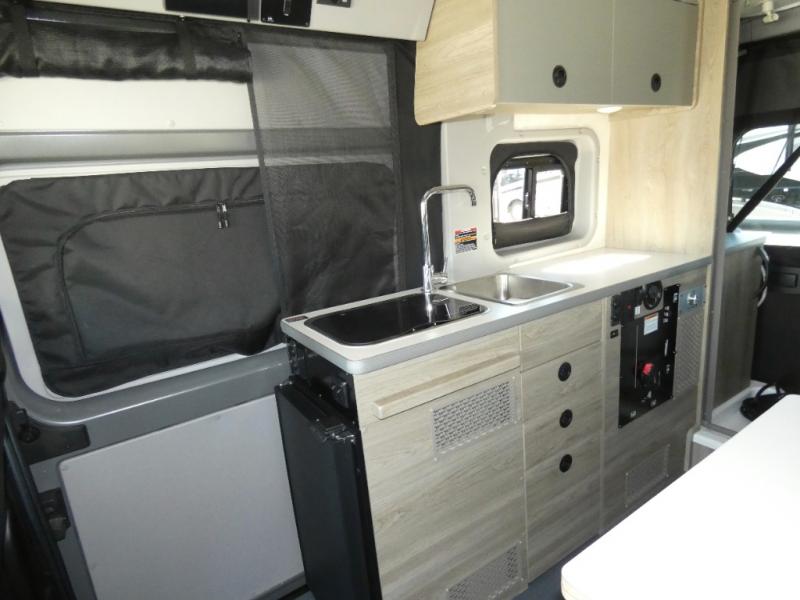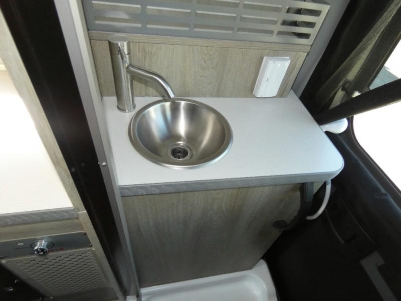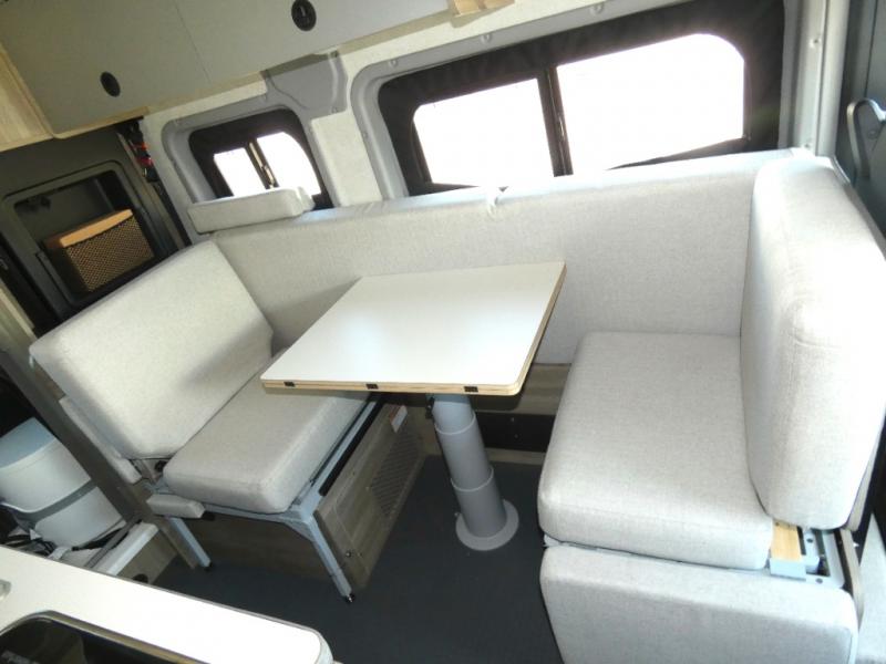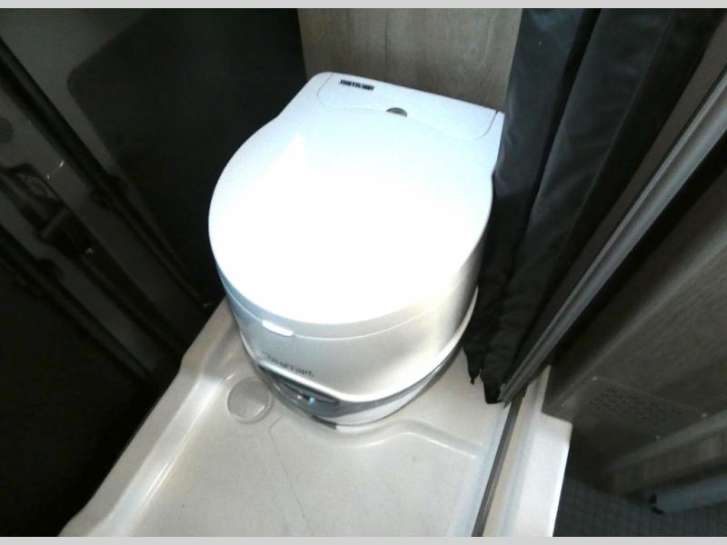 This camper van is perfect for independent travel or if you've got a camping partner to take along with you! The convertible dinette bed can transform into a twin-size bed for one or a double-size bed for two. The three seating modes include a belt mode, sofa mode, or lounge mode for even more comfort. You will find all you need in the kitchen to prepare meals each day, including a two burner range with a glass cover for more counter space and a 3.0 cu. ft. 12V single door compressor-driven refrigerator/freezer for food storage. There is a shower with a wall surround in the rear wet bath, along with a removable cassette toilet, a medicine cabinet with a mirror, and a wardrobe cabinet with added storage. This space could also be used as a mudroom after a day of exploring, or utilize it for storage!