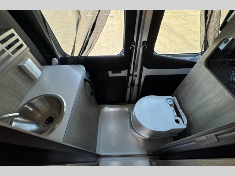 This camper van is perfect for independent travel or if you've got a camping partner to take along with you! The convertible dinette bed can transform into a twin-size bed for one or a double-size bed for two. And the optional pop-top sleeping area can be added if you're needing more sleeping space The three seating modes include a belt mode, sofa mode, or lounge mode for even more comfort. You will find all you need in the kitchen to prepare meals each day, including a two burner range with a glass cover for more counter space and a 3.0 cu. ft. 12V single door compressor-driven refrigerator/freezer for food storage. There is a shower with a wall surround in the rear wet bath, along with a removable cassette toilet, a medicine cabinet with a mirror, and a wardrobe cabinet with added storage. This space could also be used as a mudroom after a day of exploring, or utilize it for storage!