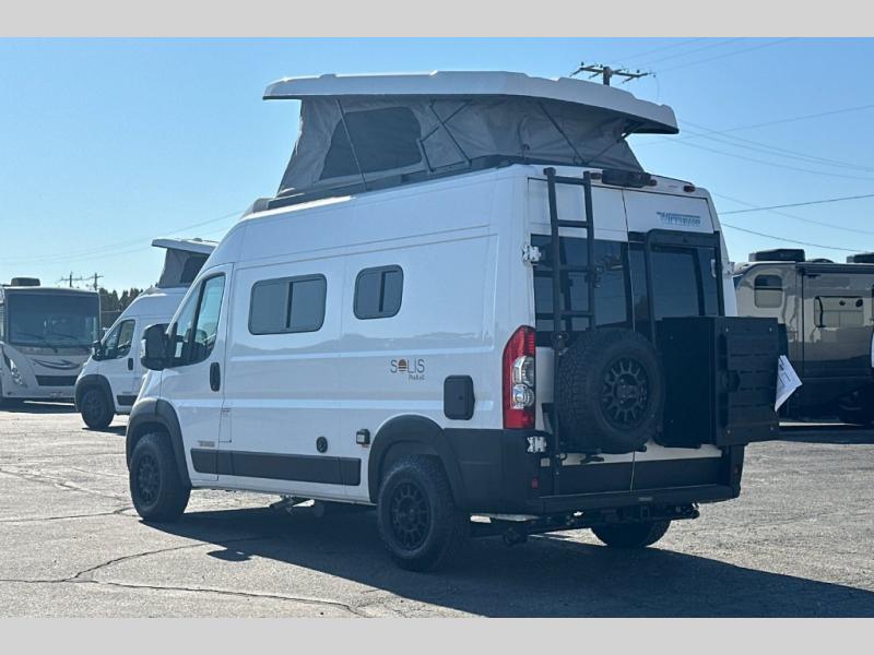 If you want the versatility for your backcountry excursions, and the ability to navigate urban areas, then you need one of these Winnebago Solis Pocket Class B gas motorhomes! A Ram ProMaster 3.6L V6 gas engine with 280HP and a 9-speed automatic transmission power these units to your greatest adventures. Some cab conveniences you will appreciate while driving include a radio/rear view monitor system touch screen, pedestrian automatic emergency braking system, and captain chairs that can slide/swivel/recline and have adjustable headrests. Zippered window coverings give you extra privacy and the heavy duty vinyl flooring throughout is sure to hold up through all of your adventures. A rod and privacy screen is provided for the rear annex to hang your wet clothes or even use as an outdoor shower. Navigate your next adventure with a Solis Pocket!