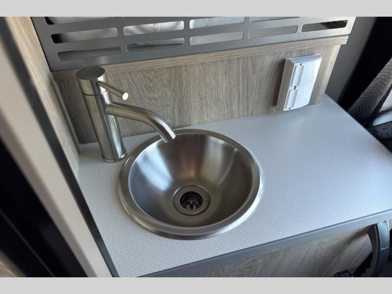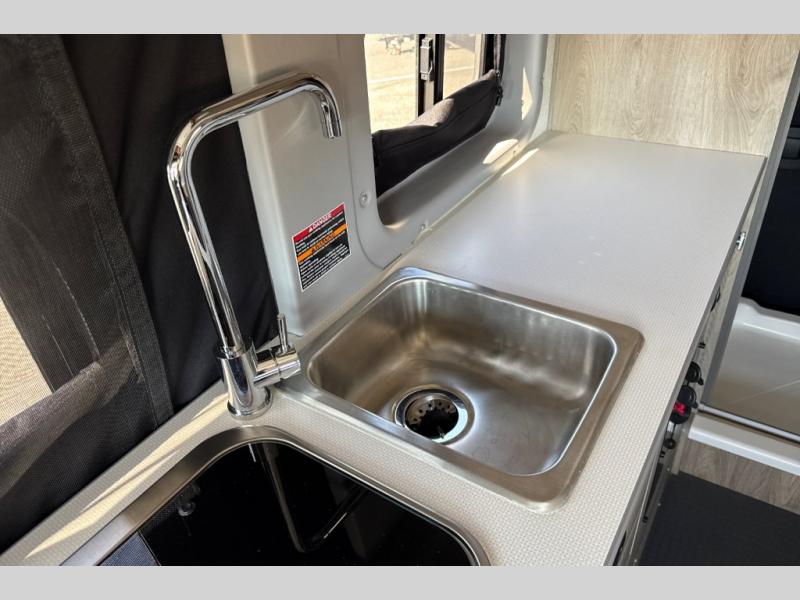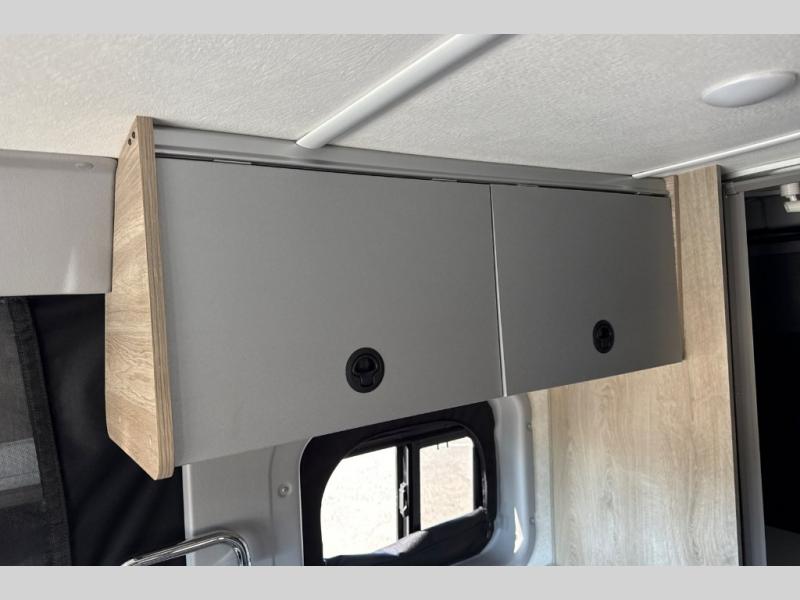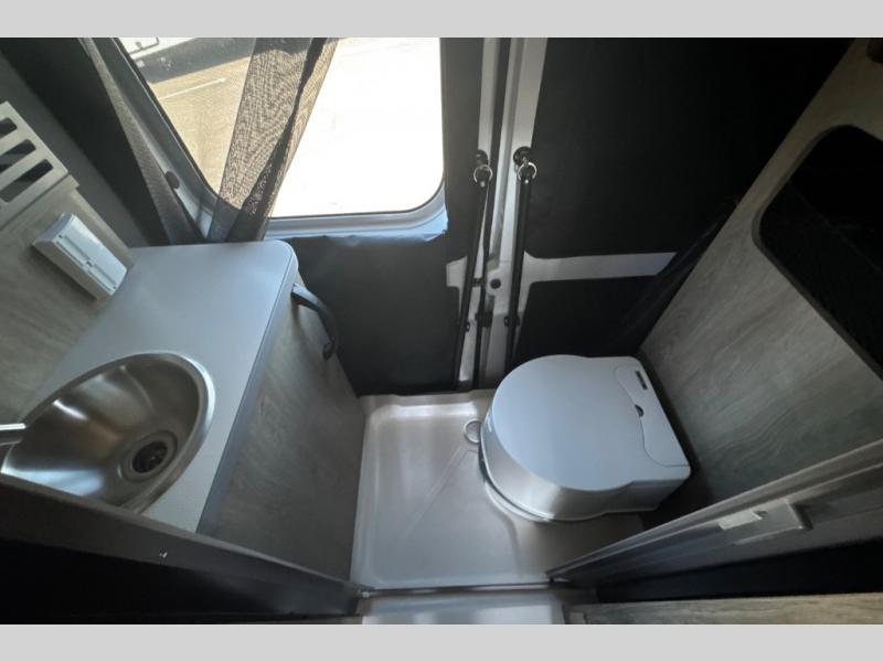 This camper van is perfect for independent travel or if you've got a camping partner to take along with you! The convertible dinette bed can transform into a twin-size bed for one or a double-size bed for two. And the optional pop-top sleeping area can be added if you're needing more sleeping space The three seating modes include a belt mode, sofa mode, or lounge mode for even more comfort. You will find all you need in the kitchen to prepare meals each day, including a two burner range with a glass cover for more counter space and a 3.0 cu. ft. 12V single door compressor-driven refrigerator/freezer for food storage. There is a shower with a wall surround in the rear wet bath, along with a removable cassette toilet, a medicine cabinet with a mirror, and a wardrobe cabinet with added storage. This space could also be used as a mudroom after a day of exploring, or utilize it for storage!