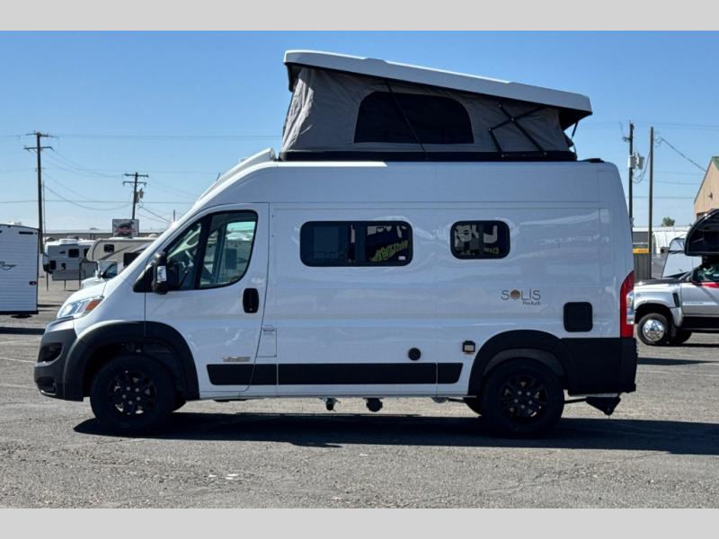 If you want the versatility for your backcountry excursions, and the ability to navigate urban areas, then you need one of these Winnebago Solis Pocket Class B gas motorhomes! A Ram ProMaster 3.6L V6 gas engine with 280HP and a 9-speed automatic transmission power these units to your greatest adventures. Some cab conveniences you will appreciate while driving include a radio/rear view monitor system touch screen, pedestrian automatic emergency braking system, and captain chairs that can slide/swivel/recline and have adjustable headrests. Zippered window coverings give you extra privacy and the heavy duty vinyl flooring throughout is sure to hold up through all of your adventures. A rod and privacy screen is provided for the rear annex to hang your wet clothes or even use as an outdoor shower. Navigate your next adventure with a Solis Pocket!