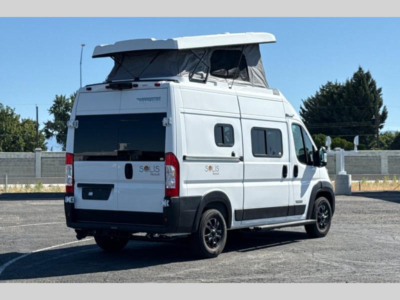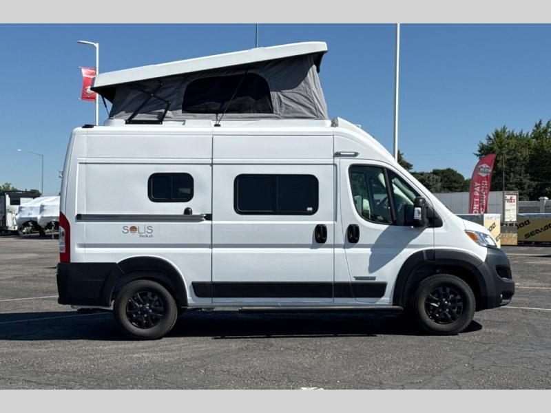If you want the versatility for your backcountry excursions, and the ability to navigate urban areas, then you need one of these Winnebago Solis Pocket Class B gas motorhomes! A Ram ProMaster 3.6L V6 gas engine with 280HP and a 9-speed automatic transmission power these units to your greatest adventures. Some cab conveniences you will appreciate while driving include a radio/rear view monitor system touch screen, pedestrian automatic emergency braking system, and captain chairs that can slide/swivel/recline and have adjustable headrests. Zippered window coverings give you extra privacy and the heavy duty vinyl flooring throughout is sure to hold up through all of your adventures. A rod and privacy screen is provided for the rear annex to hang your wet clothes or even use as an outdoor shower. Navigate your next adventure with a Solis Pocket!
