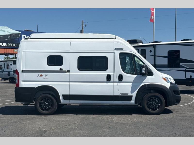 If you want the versatility for your backcountry excursions, and the ability to navigate urban areas, then you need one of these Winnebago Solis Pocket Class B gas motorhomes! A Ram ProMaster 3.6L V6 gas engine with 280HP and a 9-speed automatic transmission power these units to your greatest adventures. Some cab conveniences you will appreciate while driving include a radio/rear view monitor system touch screen, pedestrian automatic emergency braking system, and captain chairs that can slide/swivel/recline and have adjustable headrests. Zippered window coverings give you extra privacy and the heavy duty vinyl flooring throughout is sure to hold up through all of your adventures. A rod and privacy screen is provided for the rear annex to hang your wet clothes or even use as an outdoor shower. Navigate your next adventure with a Solis Pocket!