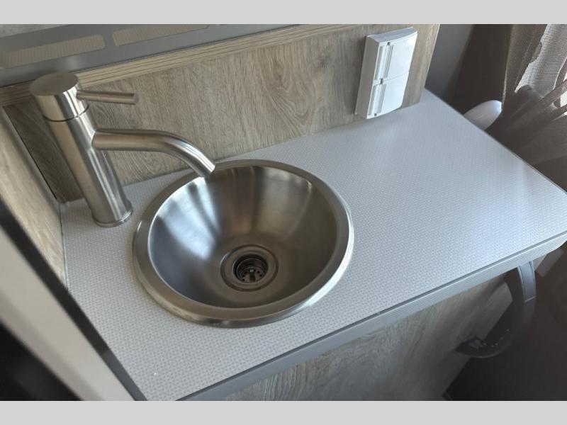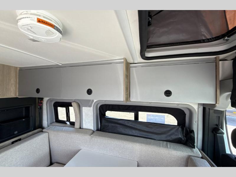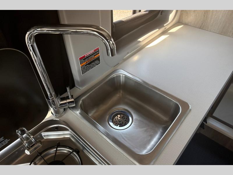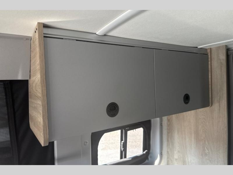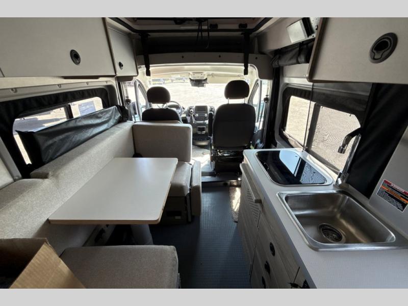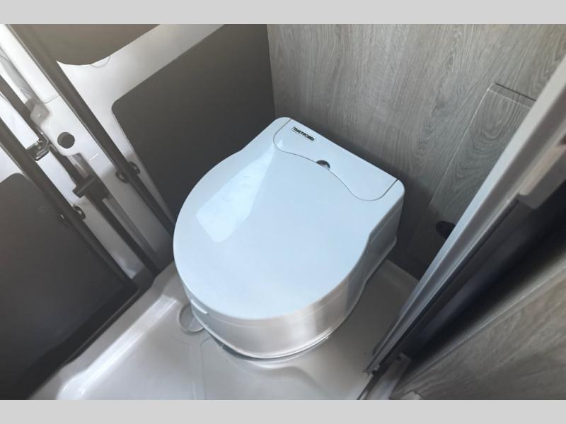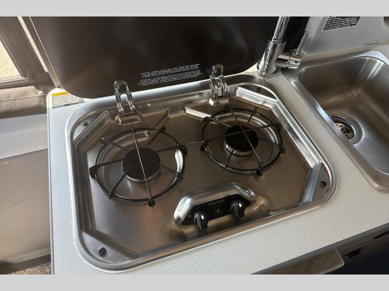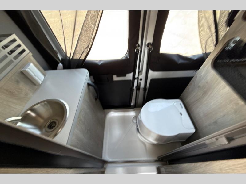 This camper van is perfect for independent travel or if you've got a camping partner to take along with you! The convertible dinette bed can transform into a twin-size bed for one or a double-size bed for two. And the optional pop-top sleeping area can be added if you're needing more sleeping space The three seating modes include a belt mode, sofa mode, or lounge mode for even more comfort. You will find all you need in the kitchen to prepare meals each day, including a two burner range with a glass cover for more counter space and a 3.0 cu. ft. 12V single door compressor-driven refrigerator/freezer for food storage. There is a shower with a wall surround in the rear wet bath, along with a removable cassette toilet, a medicine cabinet with a mirror, and a wardrobe cabinet with added storage. This space could also be used as a mudroom after a day of exploring, or utilize it for storage!