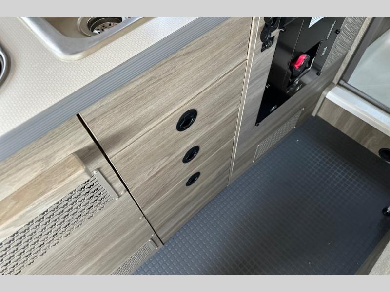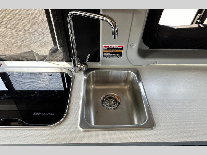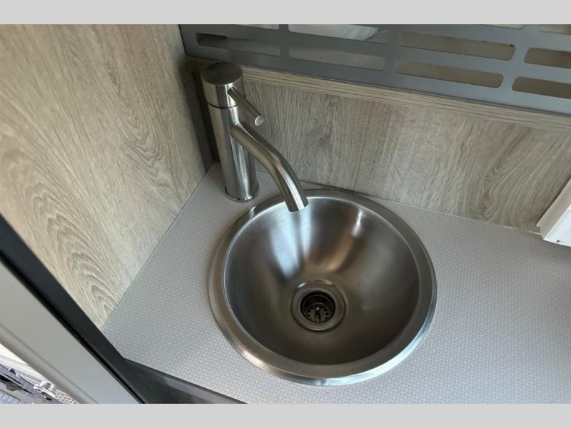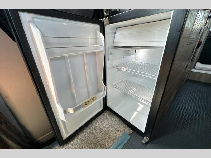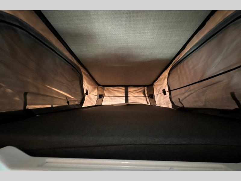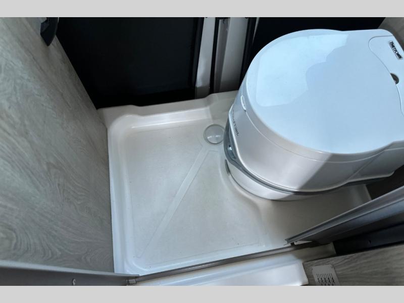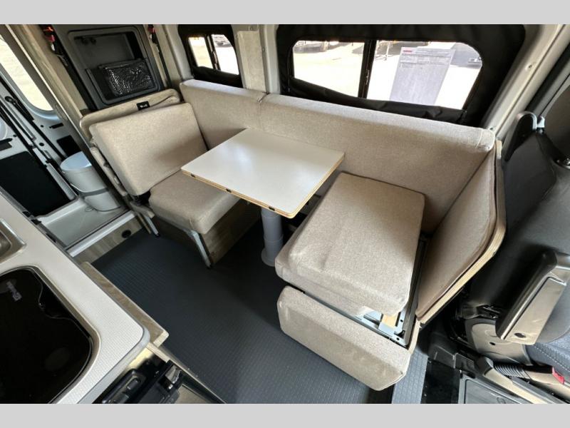 This camper van is perfect for independent travel or if you've got a camping partner to take along with you! The convertible dinette bed can transform into a twin-size bed for one or a double-size bed for two. And the optional pop-top sleeping area can be added if you're needing more sleeping space The three seating modes include a belt mode, sofa mode, or lounge mode for even more comfort. You will find all you need in the kitchen to prepare meals each day, including a two burner range with a glass cover for more counter space and a 3.0 cu. ft. 12V single door compressor-driven refrigerator/freezer for food storage. There is a shower with a wall surround in the rear wet bath, along with a removable cassette toilet, a medicine cabinet with a mirror, and a wardrobe cabinet with added storage. This space could also be used as a mudroom after a day of exploring, or utilize it for storage!