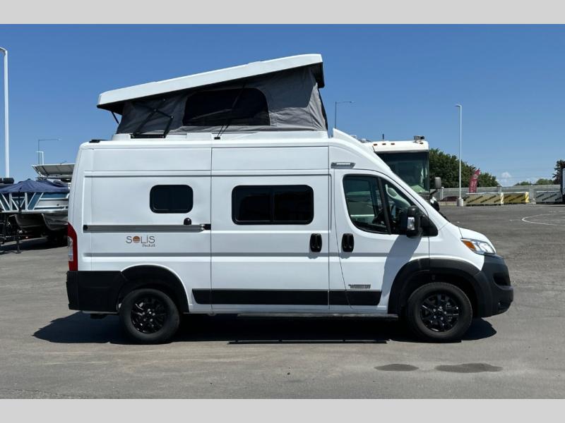 If you want the versatility for your backcountry excursions, and the ability to navigate urban areas, then you need one of these Winnebago Solis Pocket Class B gas motorhomes! A Ram ProMaster 3.6L V6 gas engine with 280HP and a 9-speed automatic transmission power these units to your greatest adventures. Some cab conveniences you will appreciate while driving include a radio/rear view monitor system touch screen, pedestrian automatic emergency braking system, and captain chairs that can slide/swivel/recline and have adjustable headrests. Zippered window coverings give you extra privacy and the heavy duty vinyl flooring throughout is sure to hold up through all of your adventures. A rod and privacy screen is provided for the rear annex to hang your wet clothes or even use as an outdoor shower. Navigate your next adventure with a Solis Pocket!