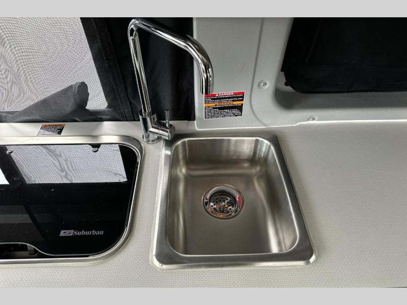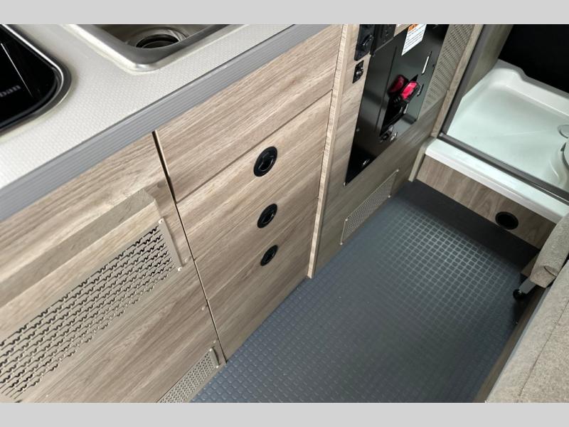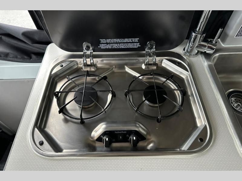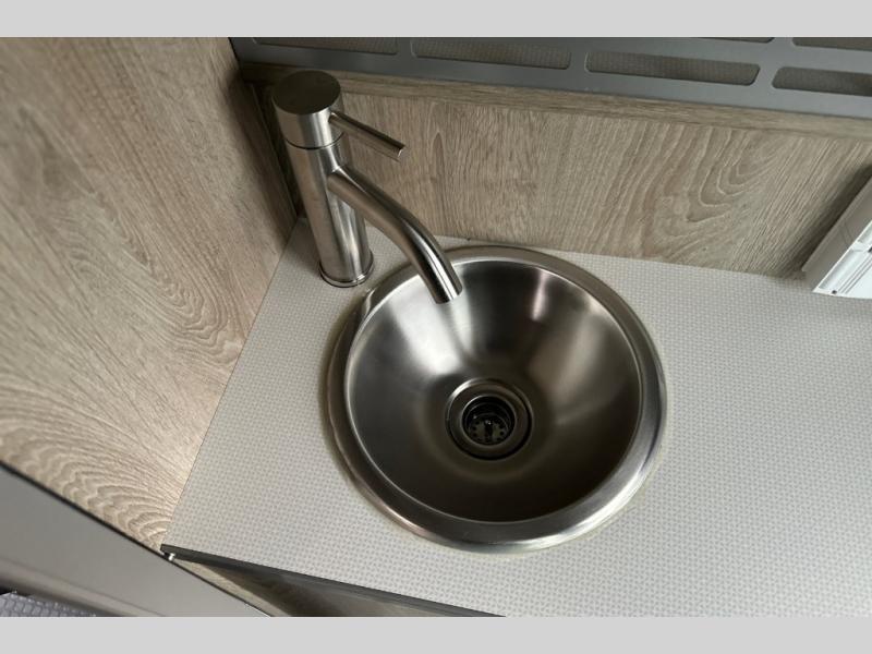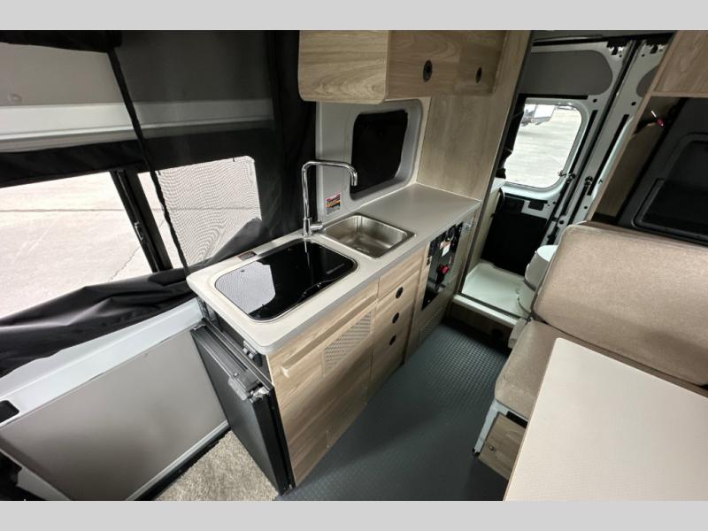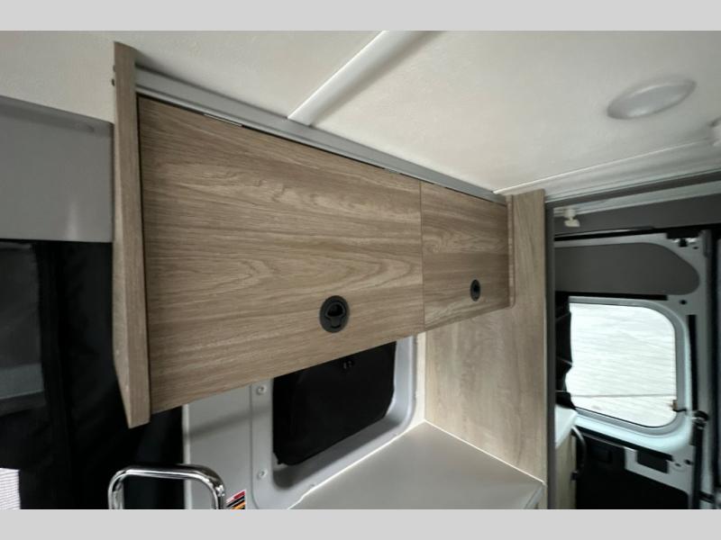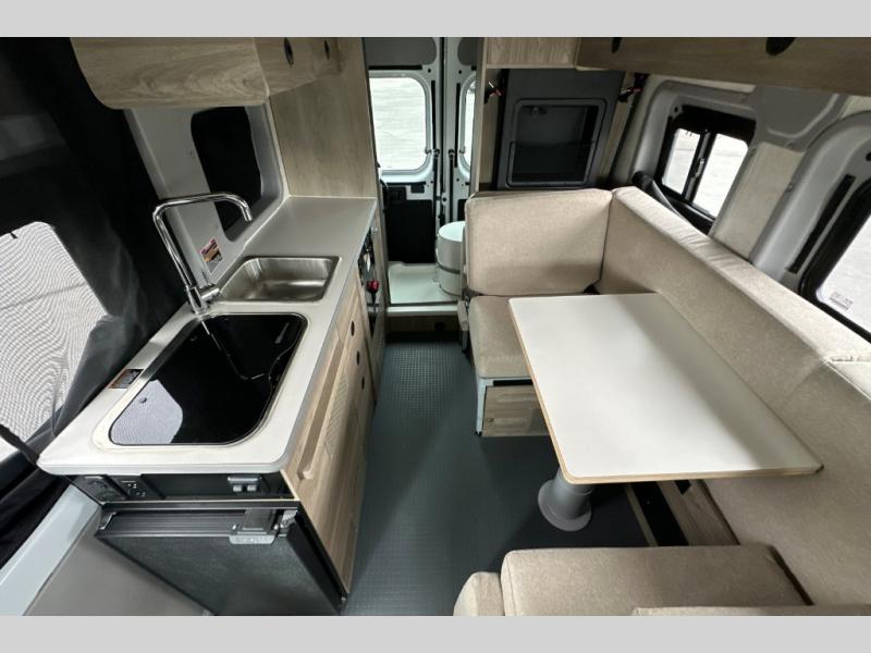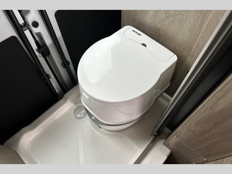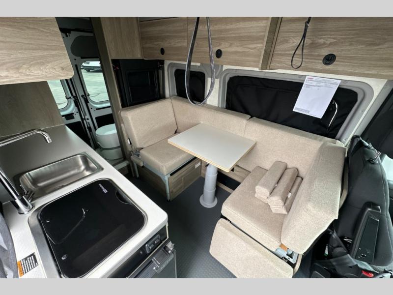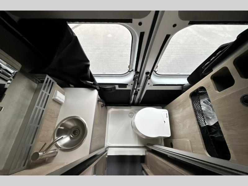 This camper van is perfect for independent travel or if you've got a camping partner to take along with you! The convertible dinette bed can transform into a twin-size bed for one or a double-size bed for two. And the optional pop-top sleeping area can be added if you're needing more sleeping space The three seating modes include a belt mode, sofa mode, or lounge mode for even more comfort. You will find all you need in the kitchen to prepare meals each day, including a two burner range with a glass cover for more counter space and a 3.0 cu. ft. 12V single door compressor-driven refrigerator/freezer for food storage. There is a shower with a wall surround in the rear wet bath, along with a removable cassette toilet, a medicine cabinet with a mirror, and a wardrobe cabinet with added storage. This space could also be used as a mudroom after a day of exploring, or utilize it for storage!