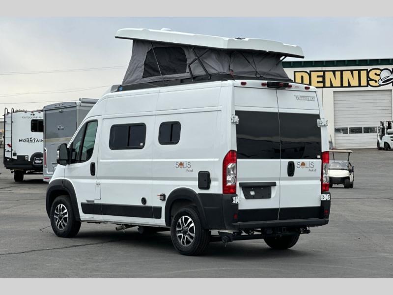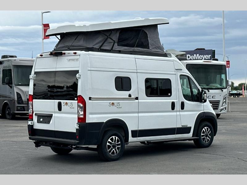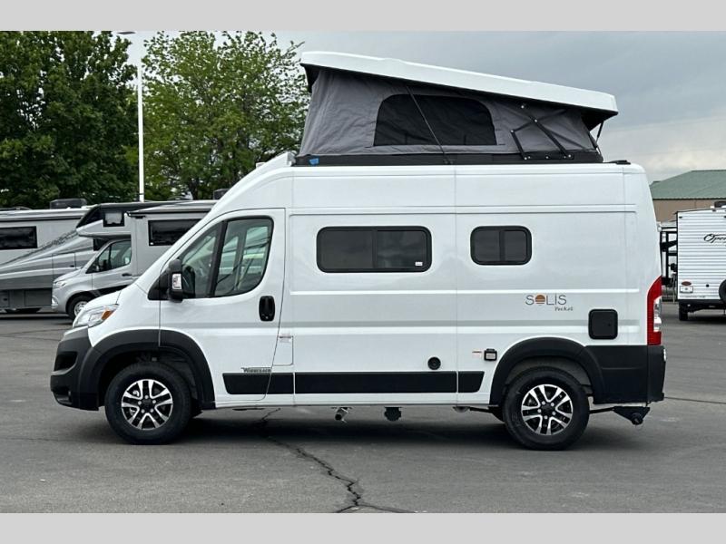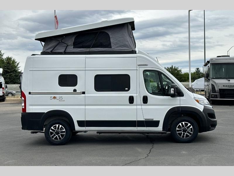 If you want the versatility for your backcountry excursions, and the ability to navigate urban areas, then you need one of these Winnebago Solis Pocket Class B gas motorhomes! A Ram ProMaster 3.6L V6 gas engine with 280HP and a 9-speed automatic transmission power these units to your greatest adventures. Some cab conveniences you will appreciate while driving include a radio/rear view monitor system touch screen, pedestrian automatic emergency braking system, and captain chairs that can slide/swivel/recline and have adjustable headrests. Zippered window coverings give you extra privacy and the heavy duty vinyl flooring throughout is sure to hold up through all of your adventures. A rod and privacy screen is provided for the rear annex to hang your wet clothes or even use as an outdoor shower. Navigate your next adventure with a Solis Pocket!