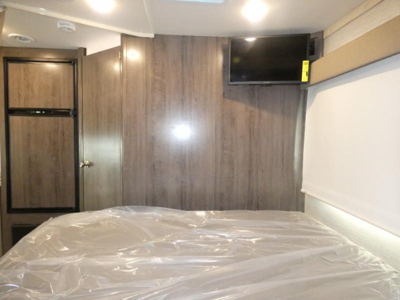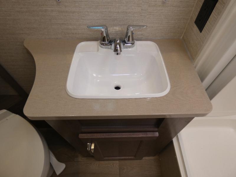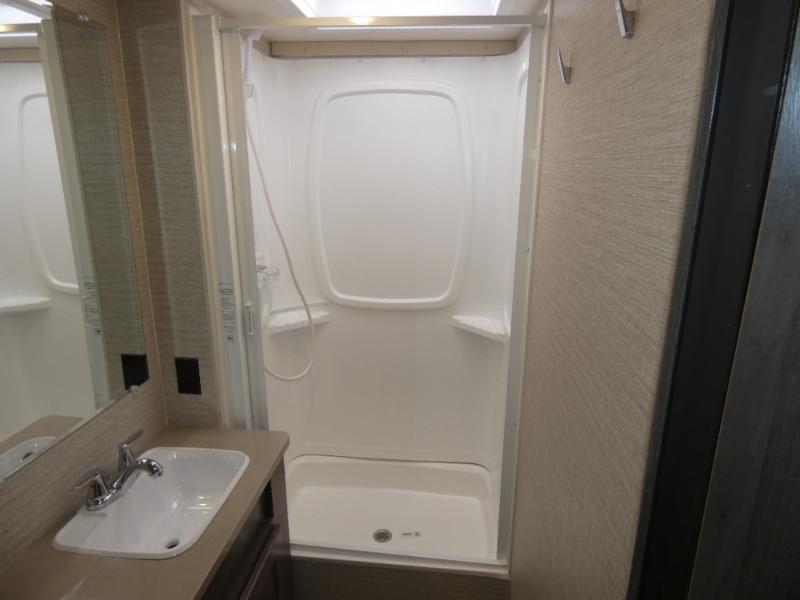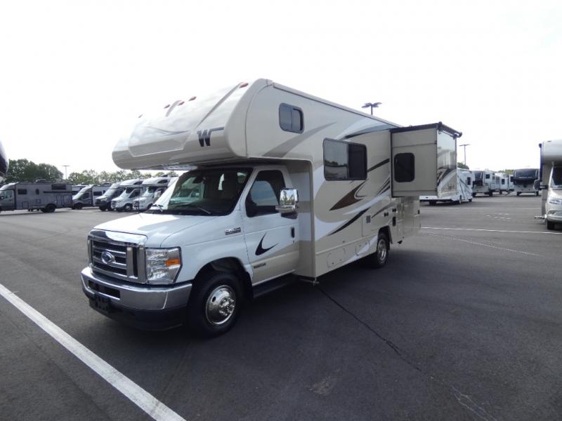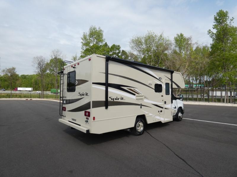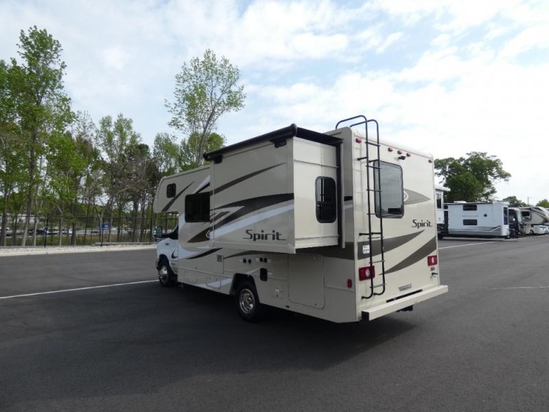 Each Spirit Class C gas motorhome by Winnebago features a powerful 7.3L V8 premium engine with a durable Ford E450 chassis. The exterior is eye-catching with its premium high-gloss fiberglass skin, along with the molded front cap, and your choice of four exterior color options. Your journey will be made enjoyable by the multi-adjustable slide/recline cab seats, and the radio/rearview monitor system includes an 8.95" multi-function touchscreen with a rear color camera for easy maneuvering in and out of campgrounds. Each model includes Corian solid surface countertops, vinyl flooring throughout, black-out roller shades, plus many more comforts you won't want to camp without!