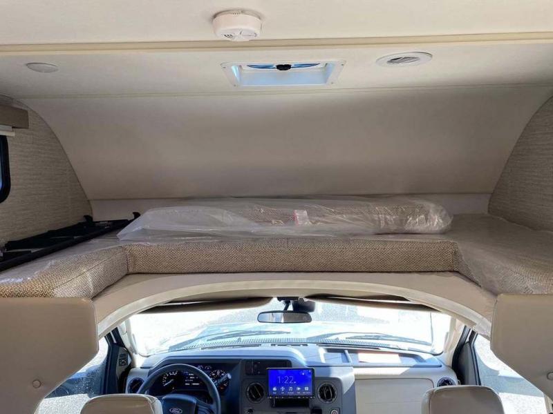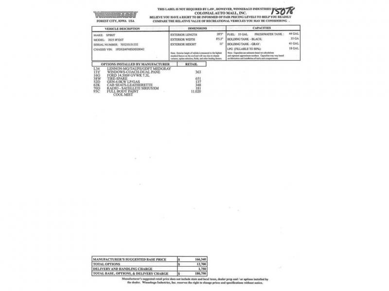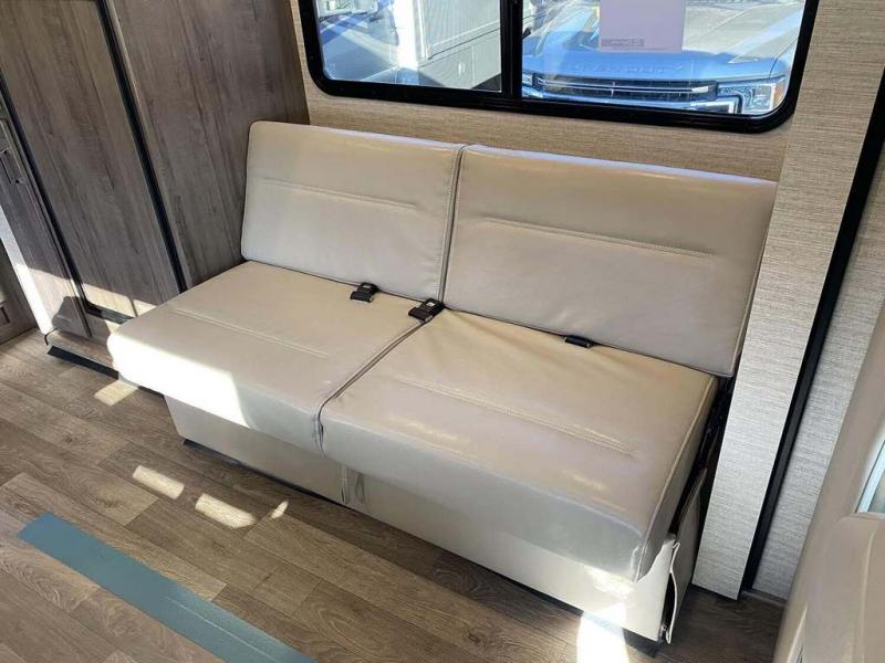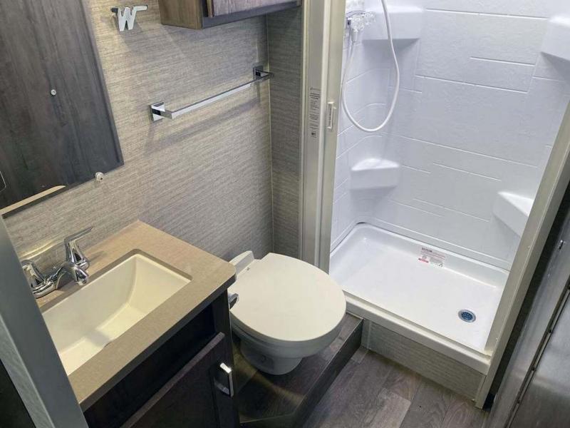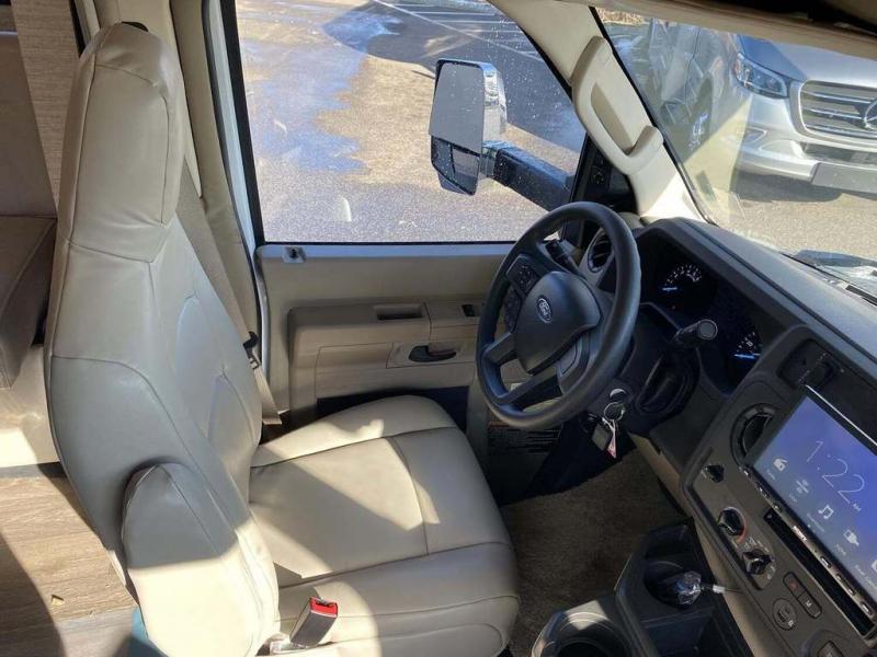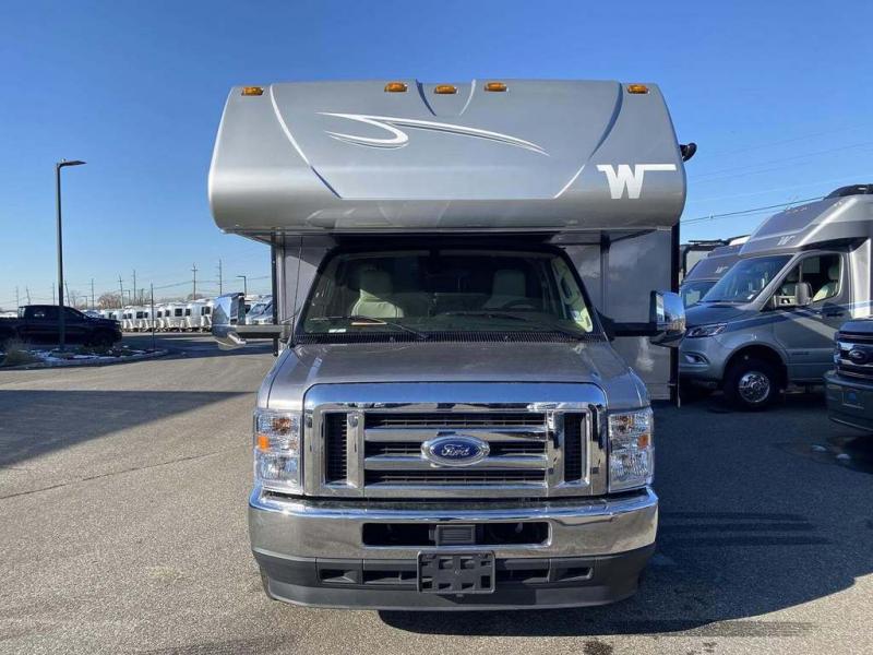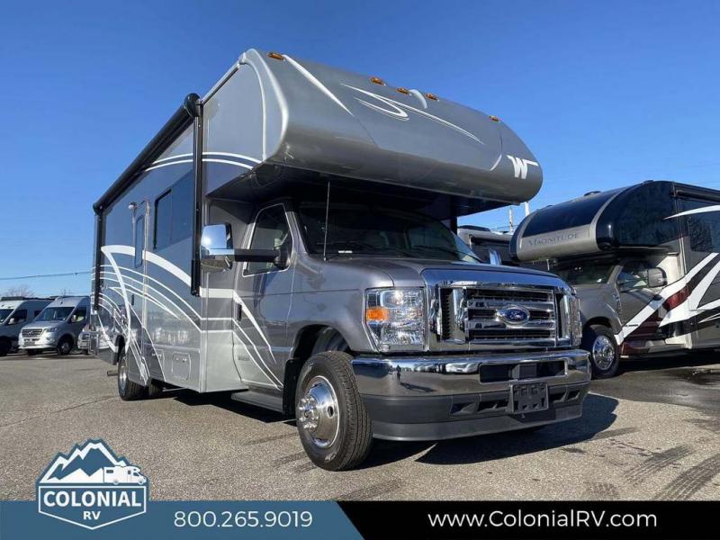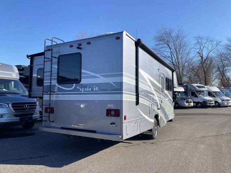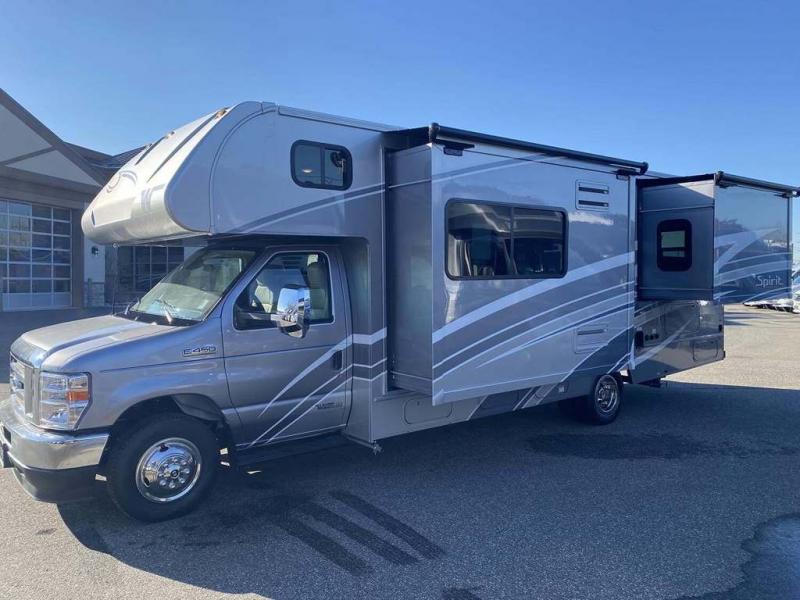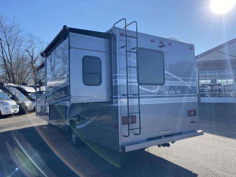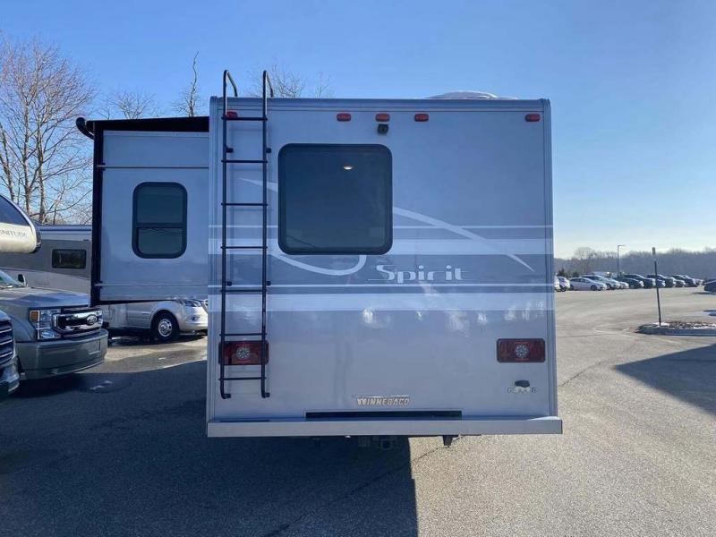 Each Spirit Class C gas motorhome by Winnebago features a powerful 7.3L V8 premium engine with a durable Ford E450 chassis. The exterior is eye-catching with its premium high-gloss fiberglass skin, along with the molded front cap, and your choice of four exterior color options. Your journey will be made enjoyable by the multi-adjustable slide/recline cab seats, and the radio/rearview monitor system includes an 8.95" multi-function touchscreen with a rear color camera for easy maneuvering in and out of campgrounds. Each model includes Corian solid surface countertops, vinyl flooring throughout, black-out roller shades, plus many more comforts you won't want to camp without!