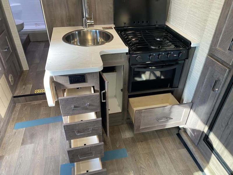 The ultimate family-friendly coach is found with this Spirit model 26T. The double slides provide more space to let everyone move about, and the private bedroom and bathroom are sure to come in handy when you need your own space. The little ones will love the cabover bunk, and you'll find additional sleeping space on the sofa bed and U-shaped dinette. Meals can be made on the three burner cooktop, and leftovers can go in the 8 cu. ft. large double door refrigerator/freezer. This model includes plenty of storage space, including a bedroom wardrobe, a kitchen pantry, plus trunk storage for camp gear.